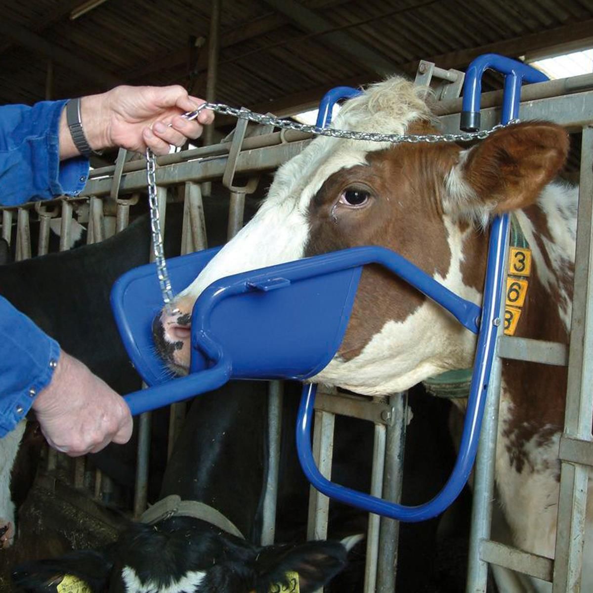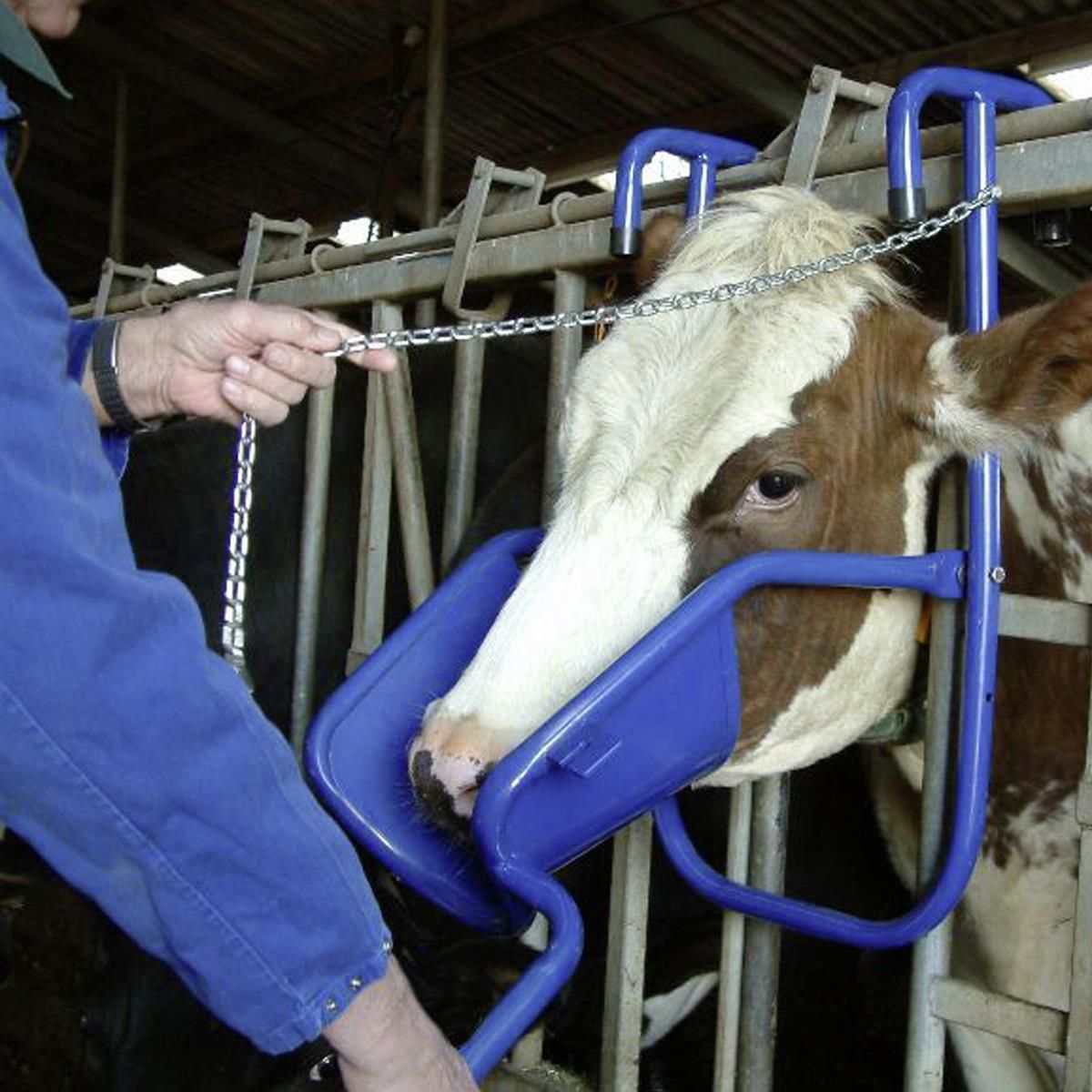 L'appui-tête pratique pour le bétail peut être fixé à la barrière d'alimentation et facilite les traitements et l'apport de médicaments ou d'aliments.