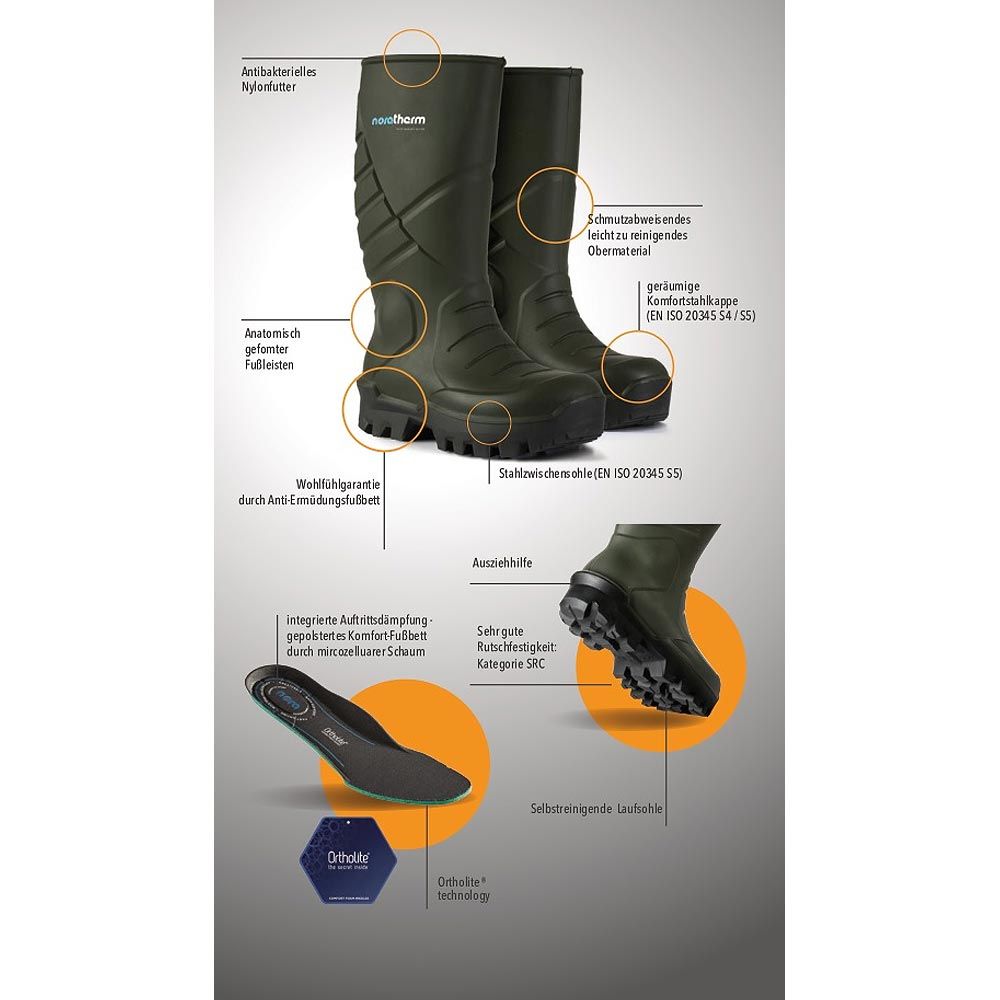 Bottes de sécurité thermique NORA PU avec embout en acier et semelle intermédiaire en acier.