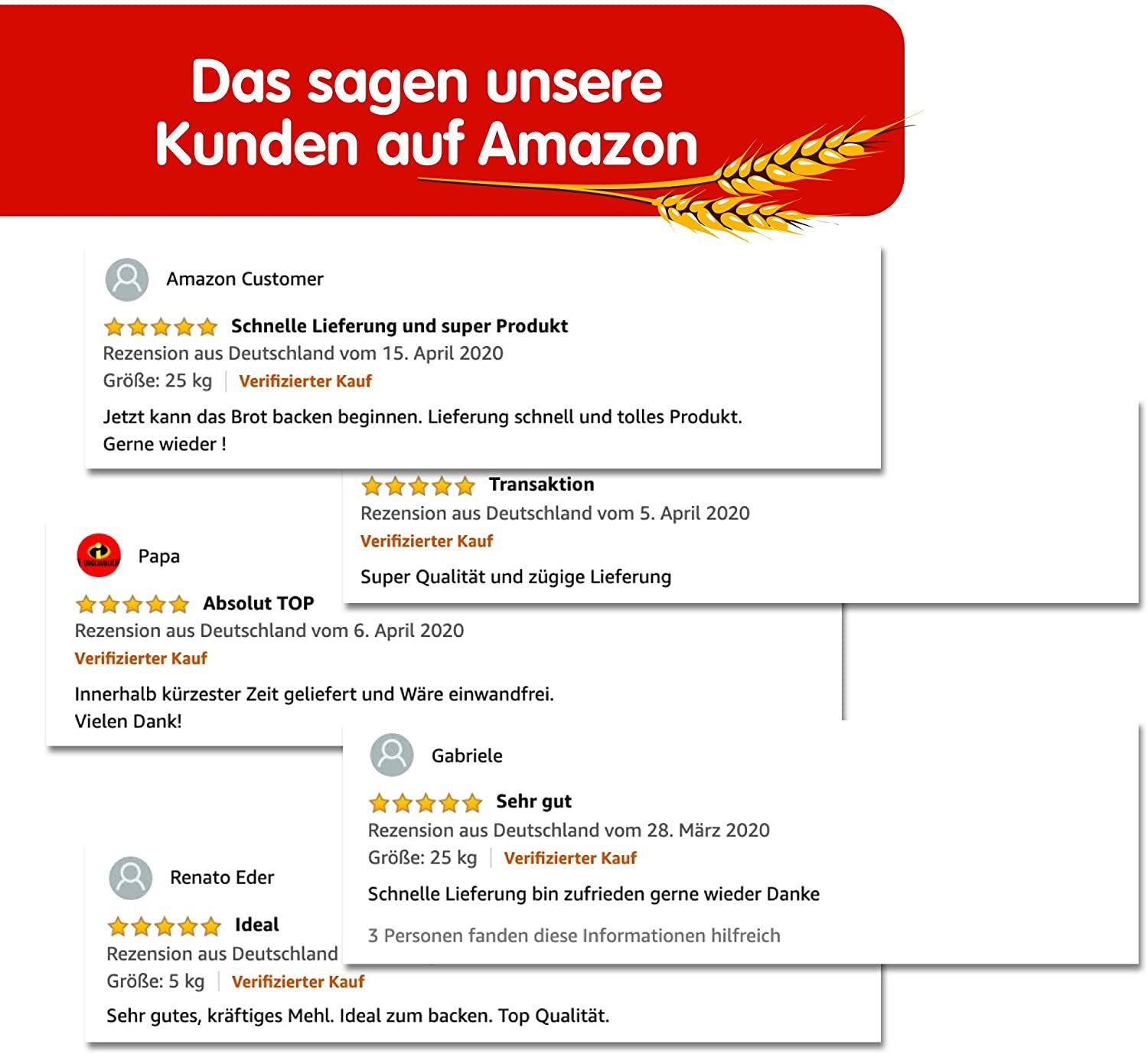 Das von ihnen erworbene Weizenmehl hat die bestmögliche Qualität und läßt sich besten verarbeiten, Haben einen Blaubeerkuchen gebacken, der hervorragend schmeckt. Produkt kann ich sehr empfehlen. MfG Erwin