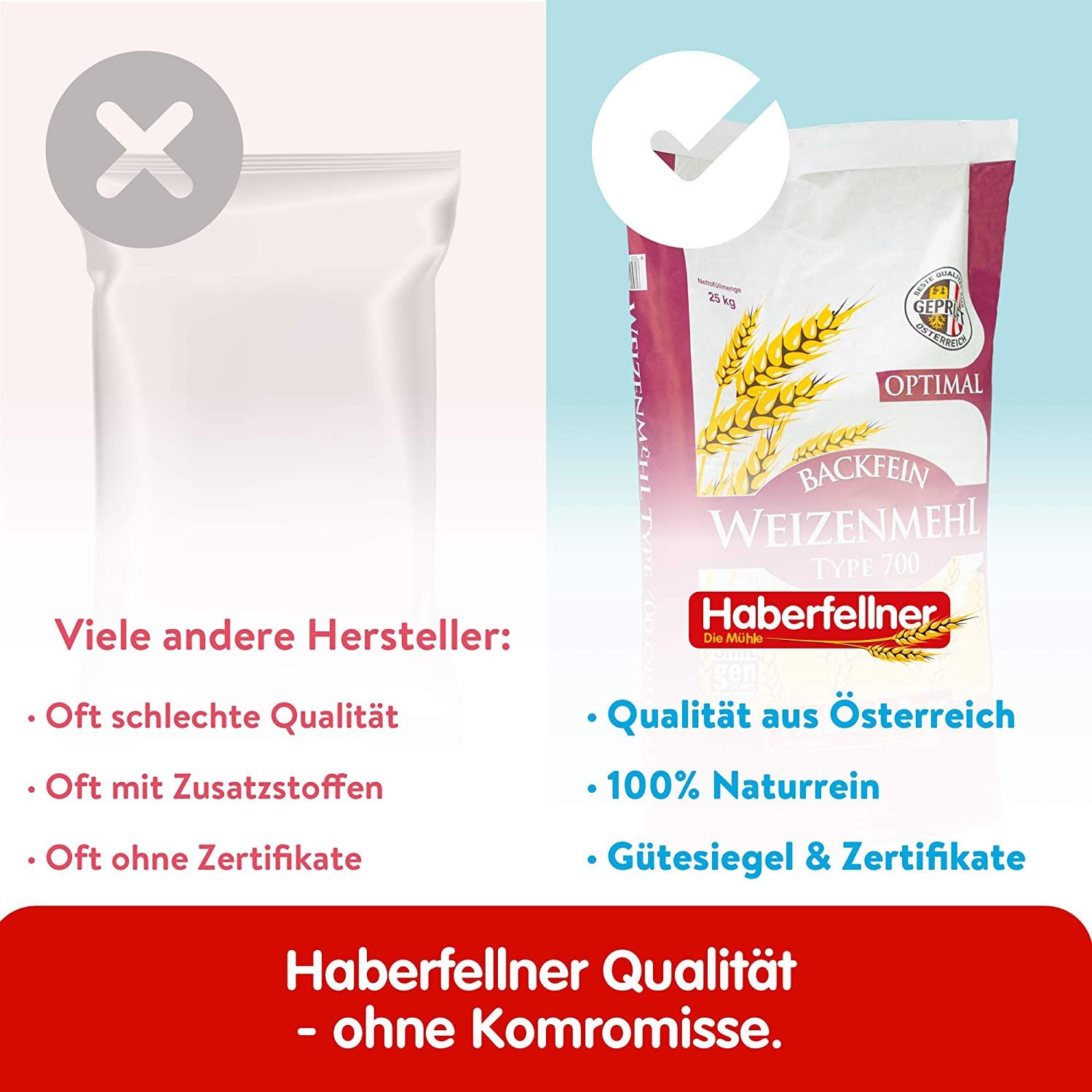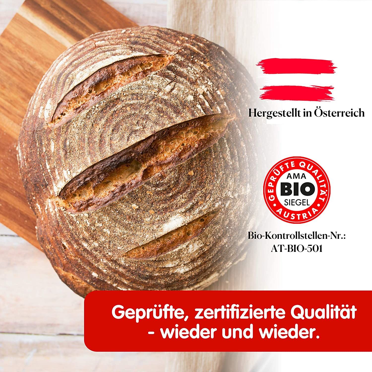 La Haberfellnerfarine de blé de type 550 (type Allemagne) / w 700 (type Autriche) optimale est à grain très fin et est souvent utilisée dans la cuisine et la pâtisserie pour la préparationsavoureux Pain, Gâteau et pour Pâtes-, Levure- et Pâte à strudel est utilisé. Ce Farine de boulangerie est également particulièrement adapté à la production de Boulangerie et pâtisserie à la levure et pour la L'épaississement des sauces. La farine de blé de type 550 / w 700 optimal a une teneur en minéraux plus élevée que la farine de blé de type 405 / w 480 et est donc également légèrement plus foncée. Pour la farine de blé uniquement Blé autrichien est utilisé. Le blé est garanti sans OGM et contrôle strict des pesticides