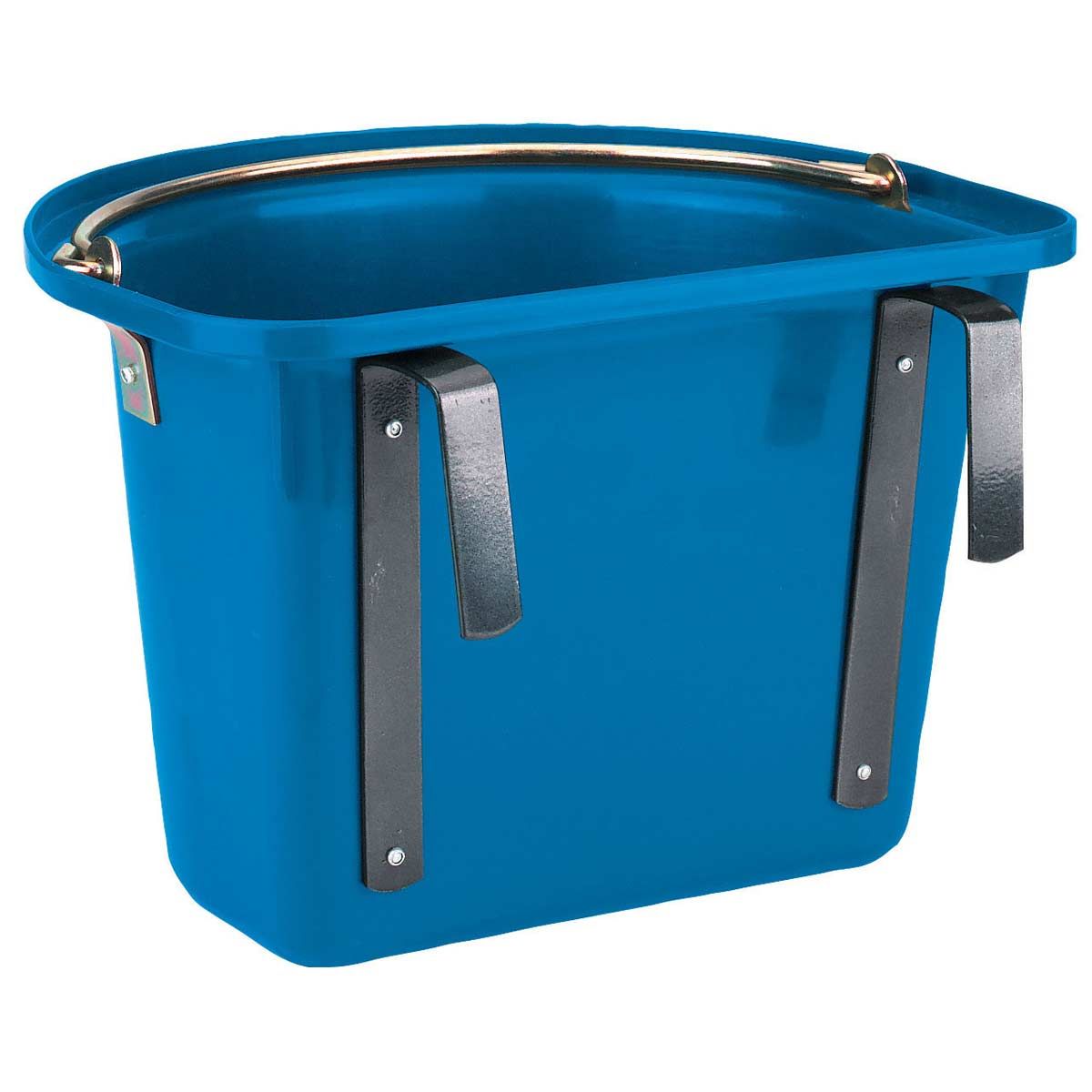 Ce seau d'alimentation d'écurie avec ses supports en métal est idéal pour être suspendu dans les transporteurs ou les boxes des chevaux. La mangeoire est munie d'une poignée métallique supplémentaire.