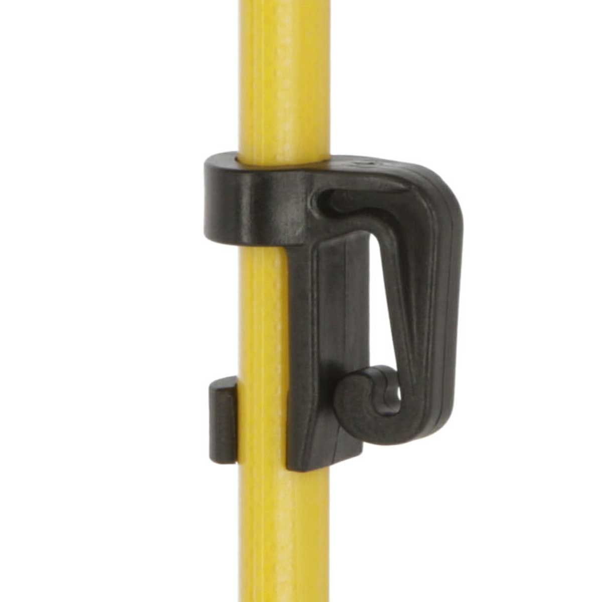 Le piquet ovale en fibre de verre est livré avec un isolateur de tête pratique et un isolateur supplémentaire réglable en hauteur, ce qui vous permet de clôturer vos animaux sur deux rangs de manière simple mais efficace. vous pouvez facilement utiliser du fil, de la corde ou du ruban jusqu'à 20 mm. Le revêtement supplémentaire en polyester non tissé confère aux piquets une structure alvéolaire visible à la surface, ce qui permet non seulement d'obtenir des surfaces parfaitement lisses, mais aussi d'éviter les résidus de fibre de verre désagréables sur la peau. Ce revêtement offre également une résistance aux UV nettement supérieure à celle des piquets en fibre de verre traditionnels.