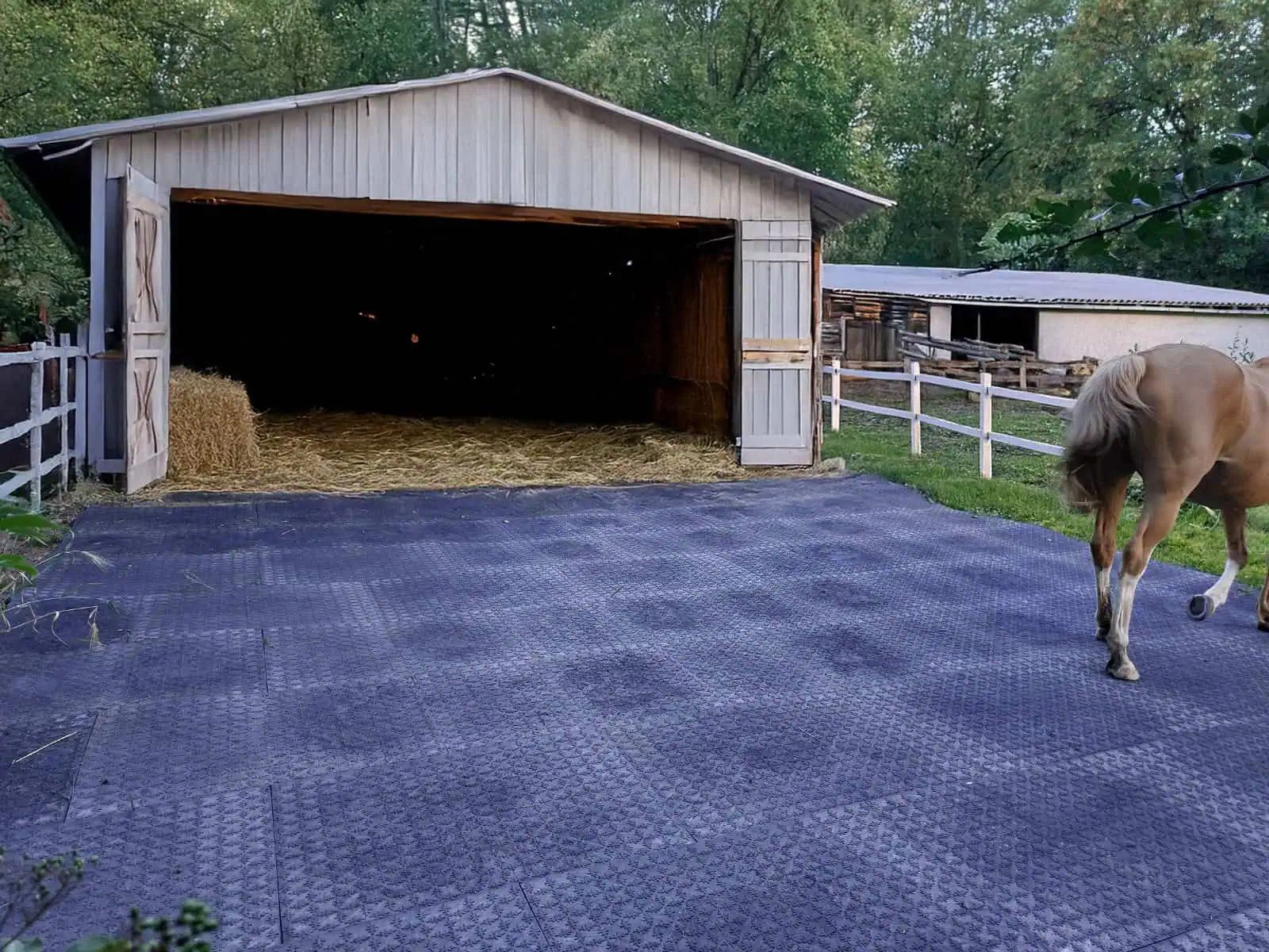 Tapis de recouvrement, tapis de protection de pavés, sol d'événement, tapis de box, tapis d'écurie, tapis de travail, événements / tournois, paddock / écurie, passerelles piétonnes temporaires, sol d'atelier, boxes, allées d'écurie, aires de lavage, chemins