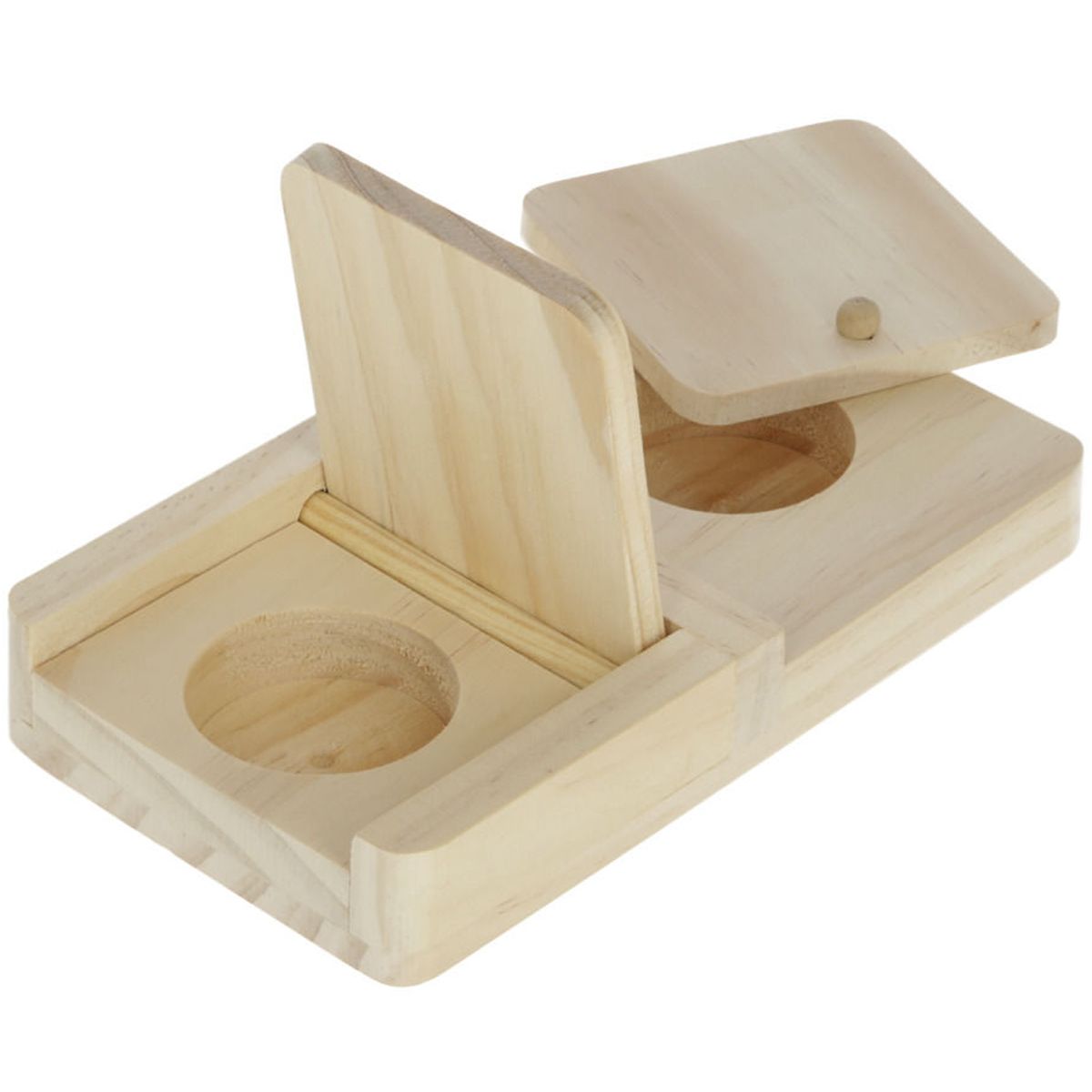 La boîte à snack de jouets pour apprendre et penser de façon amusante Kerblgarantit l'emploi de longue durée pour vos rongeurs. Le Snackbox se compose de Bois naturel et sert donc non seulement de jouet pur, mais peut également être grignoté et assure ainsi des dents saines. Il suffit de mettre de petits morceaux de nourriture dans les compartiments - et - le plaisir commence !