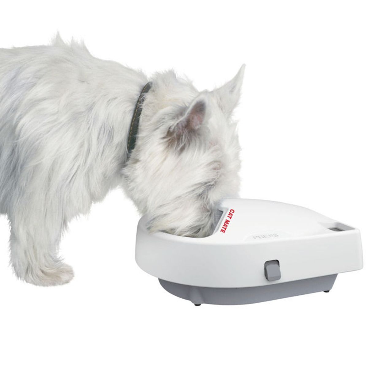 The Cat Mate C300 feeder serves 3 meals to a cat, kitten or small dog when you are away during the day, in the evening or over the weekend. With the cold pack and a tightly fitting lid, the feed stays fresh. Simply set the timer to the desired time delays to have the lid open at the desired time.