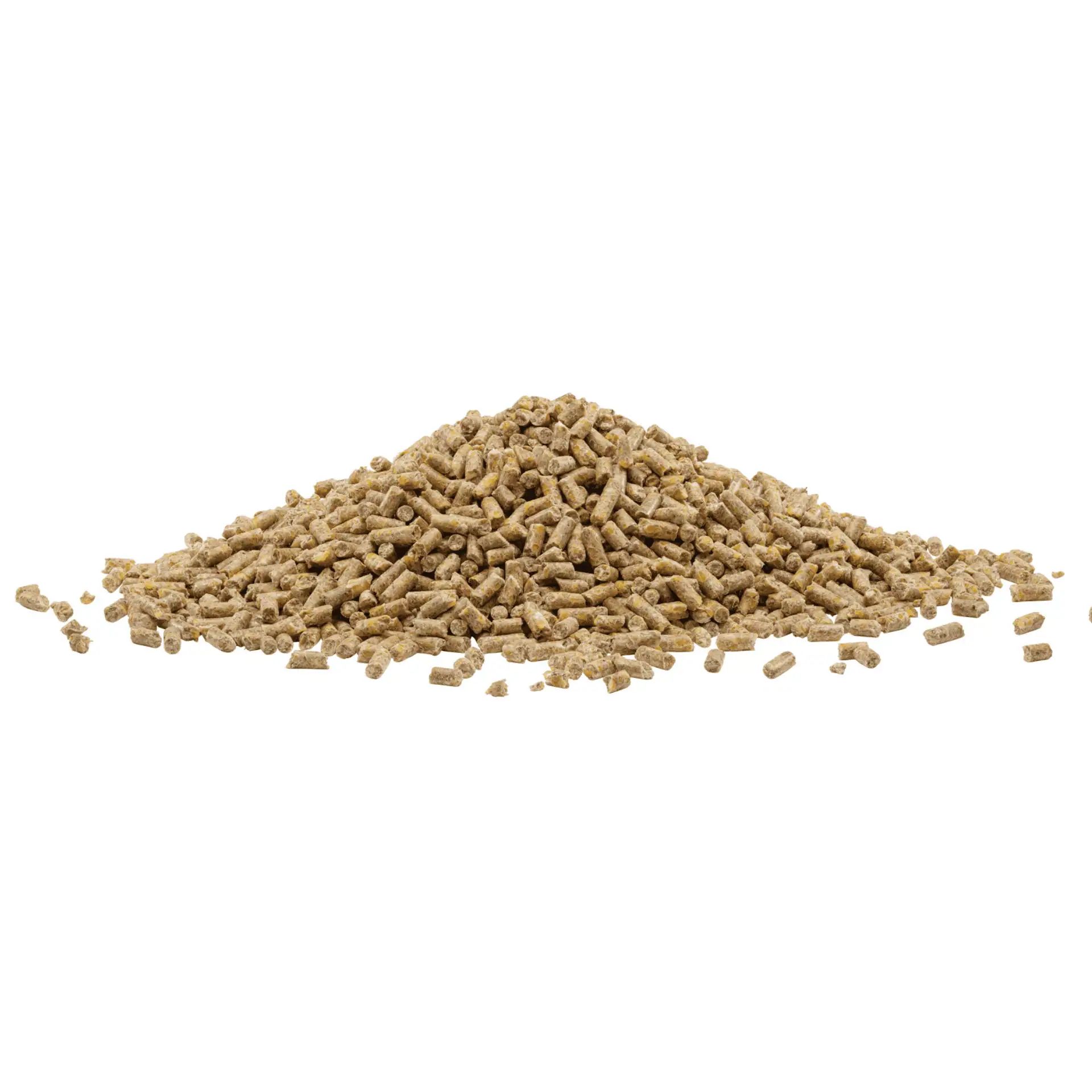 Composition : Grain de maïs, farine d'extrait de soja (fèves) avec savon (chauffé à la vapeur), son de blé, carbonate de calcium, son de seigle, orge, blé, phosphate monocalcique, chlorure de sodium, mélange de composés aromatiques contre les parasites.