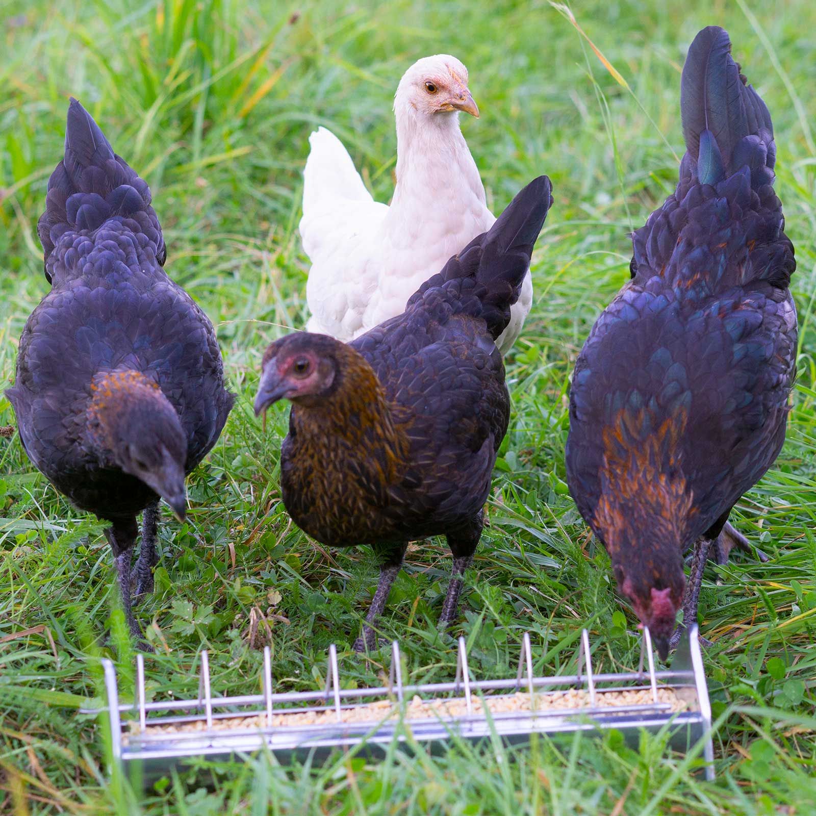 Par rapport à la farine classique ou aux aliments granulés, les granulés offrent l'avantage de densifier l'aliment et donc d'augmenter la capacité de stockage. En outre, la forme même du granulé entraîne une réduction des déchets alimentaires, une diminution de la démixtion des composants et réduit le risque d'une éventuelle contamination. La forme même de l'aliment exclut la possibilité d'une alimentation sélective par l'animal, ce qui garantit une alimentation plus complète et plus équilibrée, même pour les animaux de rang inférieur. Si la décision est prise de passer des granulés (ou de la farine) aux pellets, une période d'adaptation appropriée doit être envisagée. L'aliment pour poules pondeuses Leimüller Premium est garanti sans OGM et certifié par les labels de qualité pastus+ (qualité et sécurité alimentaire des aliments pour animaux en Autriche) et AMA-Label de qualité. Le label AMA garantit que les produits alimentaires ont une origine traçable et répondent aux normes de qualité les plus élevées. Les agriculteurs, les usines de transformation et les détaillants doivent respecter des normes strictes, qui sont contrôlées par des centres de test indépendants.