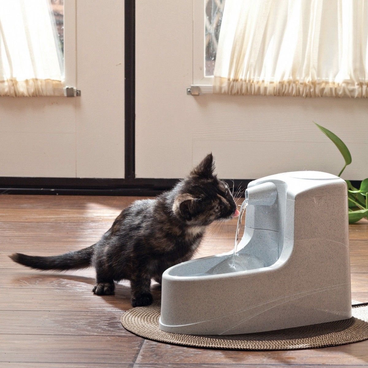 Une réserve pratique d'eau toujours fraîche et filtrée ! Grâce à la nouvelle fontaine à eau Drinkwell Platinum, même votre animal de compagnie est encouragé à boire davantage d'eau fraîche et riche en oxygène. L'abreuvoir a été développé par des vétérinaires et protège la santé de votre animal, tout en réduisant la formation de calculs urinaires et la gale urinaire. La pompe submersible permet un fonctionnement presque silencieux. Le préfiltre arrête les poils et autres grosses particules avant qu'ils n'atteignent le moteur. Un filtre à charbon particulièrement grand élimine les mauvais goûts et les mauvaises odeurs et offre ainsi à votre animal domestique la meilleure et la plus intéressante façon de boire suffisamment ! Le filtre à charbon doit être remplacé toutes les 2 à 4 semaines. La consommation horaire est d'environ 2 watts.