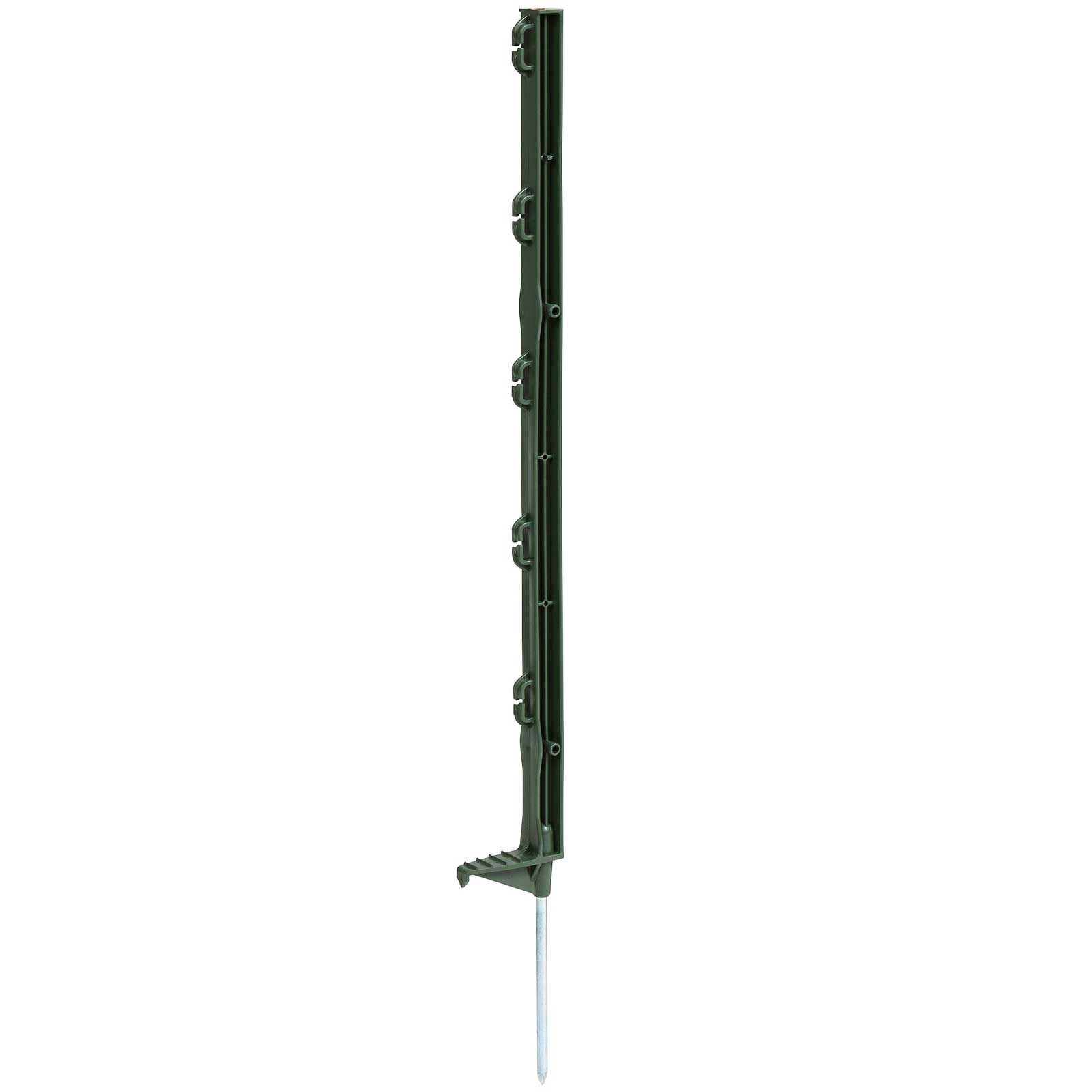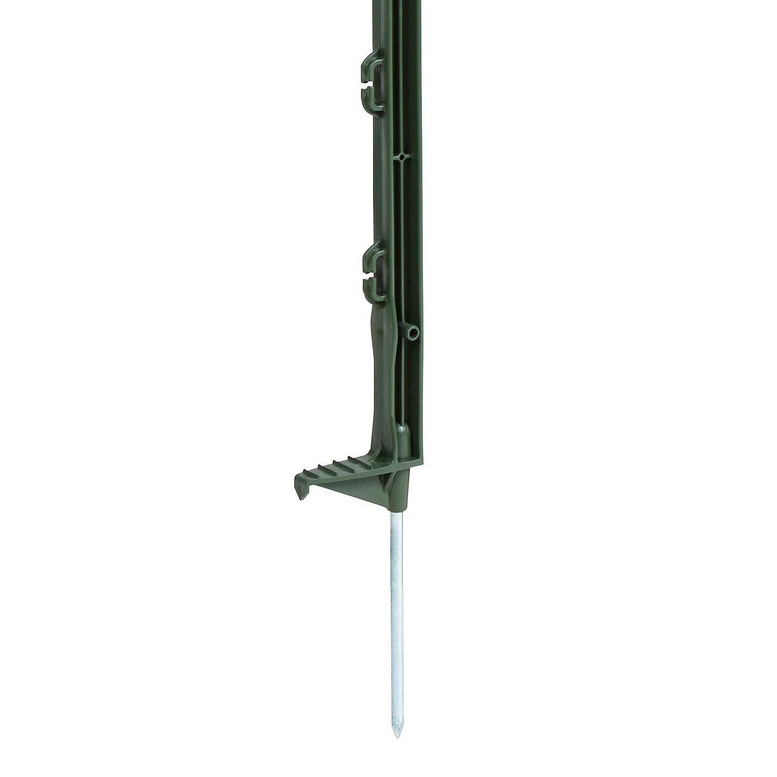 Le piquet en plastique renforcé de fibres de verre est un piquet de clôture électrique mobile qui convient parfaitement pour clôturer les petits animaux et repousser les animaux sauvages. Doté d'un marchepied unique et d'une pointe de sol galvanisé de 18 cm, il assure une grande stabilité dans le sol. Grâce aux entretoises longitudinales supplémentaires et au renforcement en fibre de verre, il est particulièrement robuste et durable.