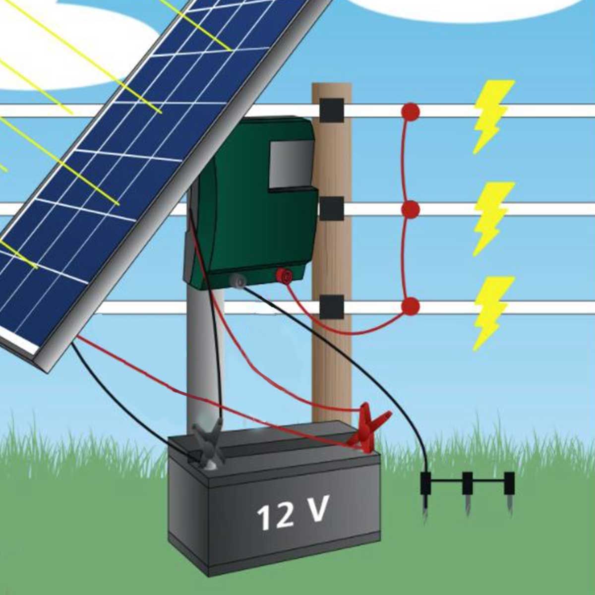 Une connexion des différentes rangées et une clôture électrique assurent une tension constante sur toutes les rangées de conducteurs. Le câble de raccordement de la bande est facile à installer, ne rouille pas et permet de raccorder des bandes d'une largeur maximale de 40 mm.
