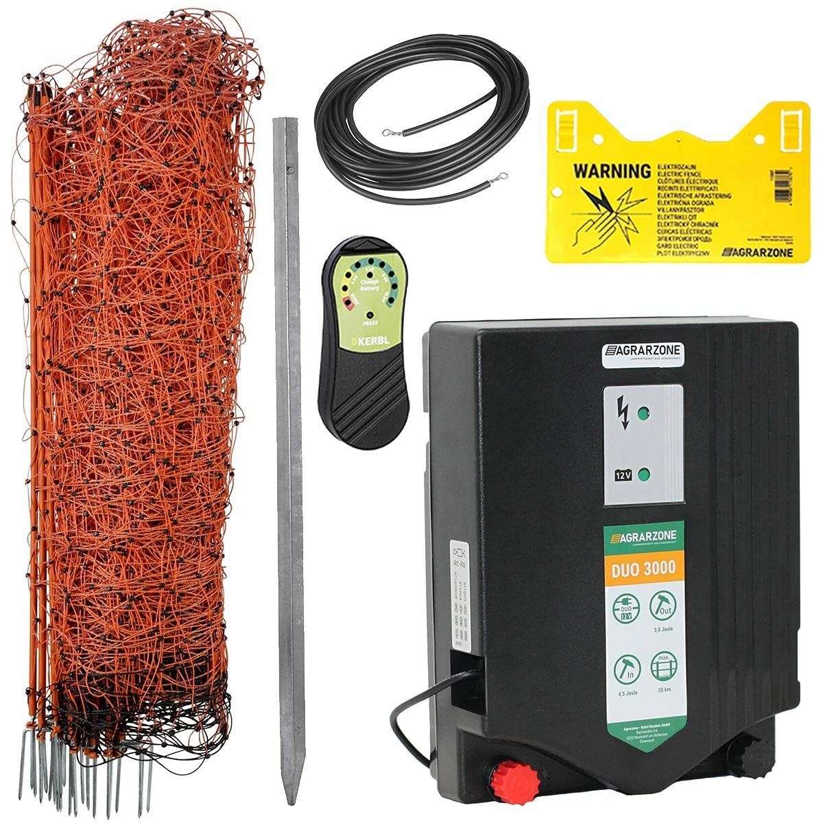 Kit complet de clôture pour moutons Agrarzone avec électrificateur - kit de démarrage de clôture pour moutons mobile et puissant pour les pâturages sans végétation