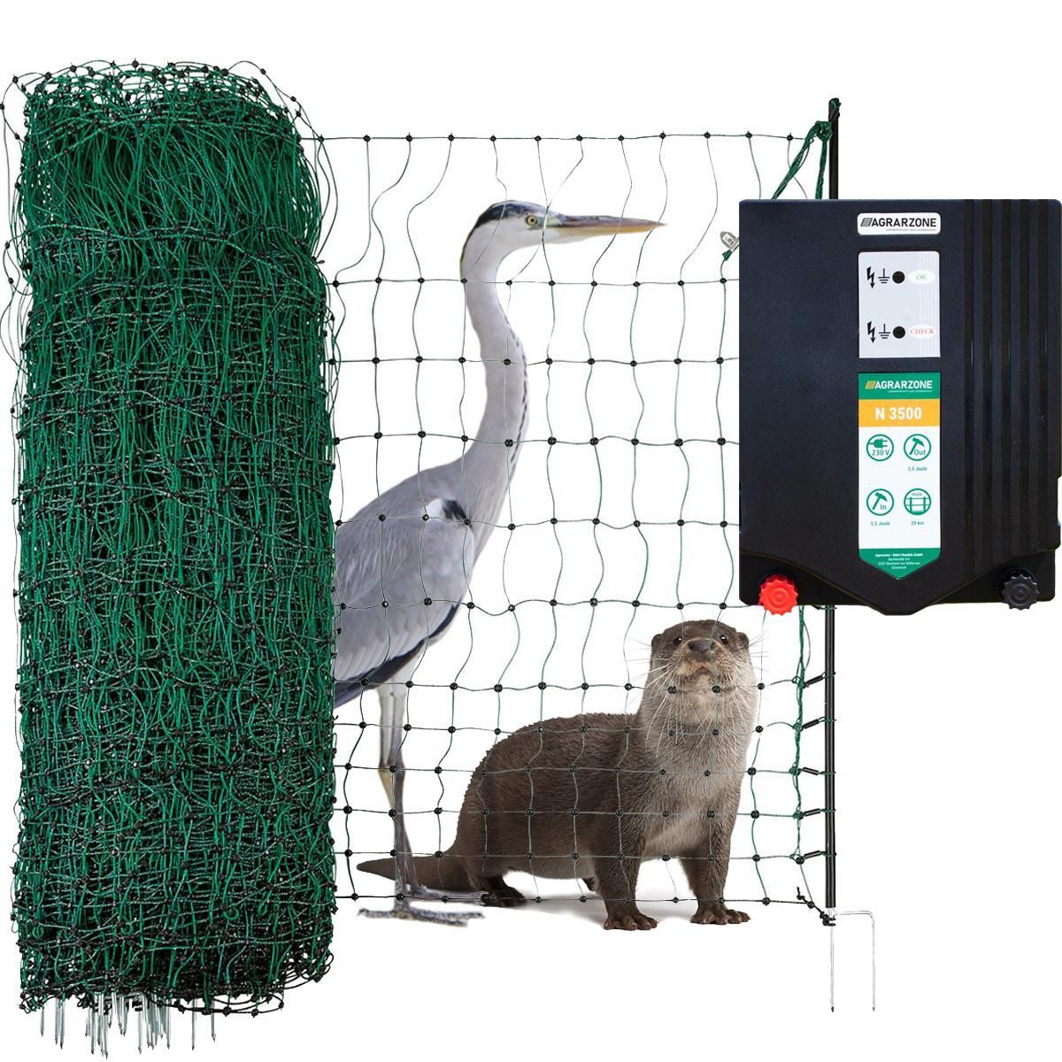 Kit clôture Agrarzone anti-héron pour étang 230V, 5,5j & filet de 200m