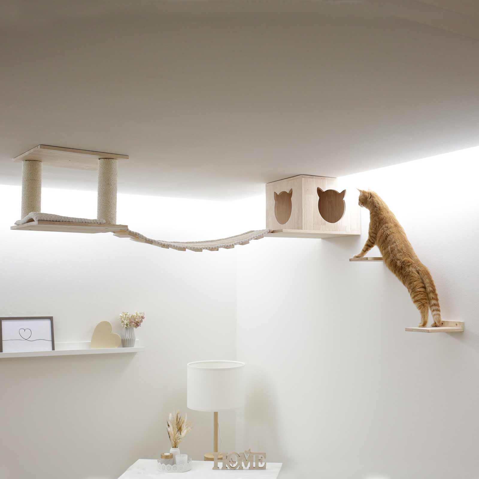Une alternative peu encombrante à l'arbre à chat - des meubles pour chats pour le plafond et le mur.