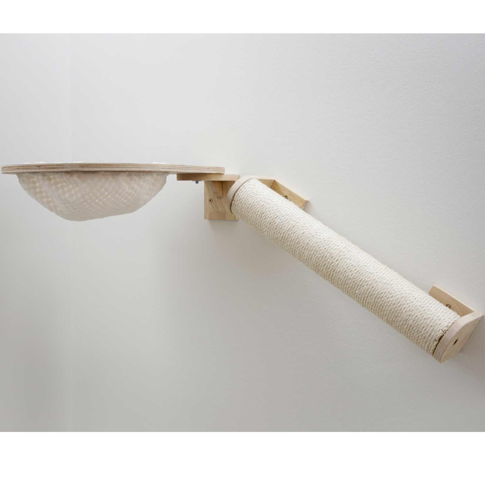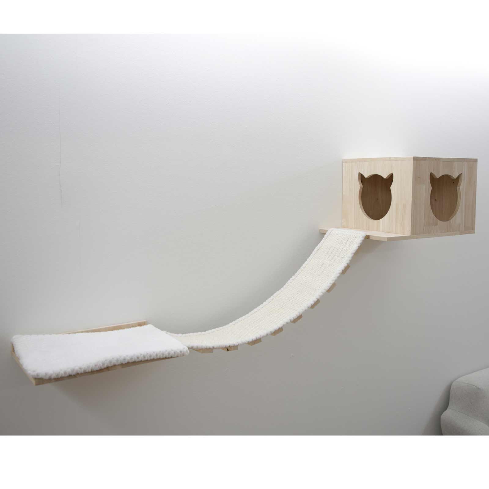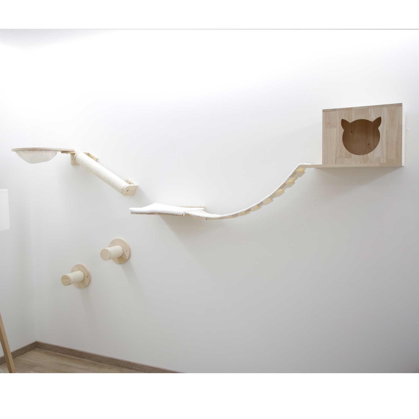 Créez votre propre mur d'escalade individuel pour votre animal. Placez simplement les 7 éléments selon vos goûts et offrez à votre chat de nombreuses possibilités de grattage et de jeu. Dans cet ensemble, vous recevrez : une niche douillette pour dormir, une colonne en sisal qui peut être utilisée pour gratter ou comme rampe, ainsi qu'une planche de couchage avec coussin, qui est reliée à une grotte par un pont suspendu et deux marches rondes.