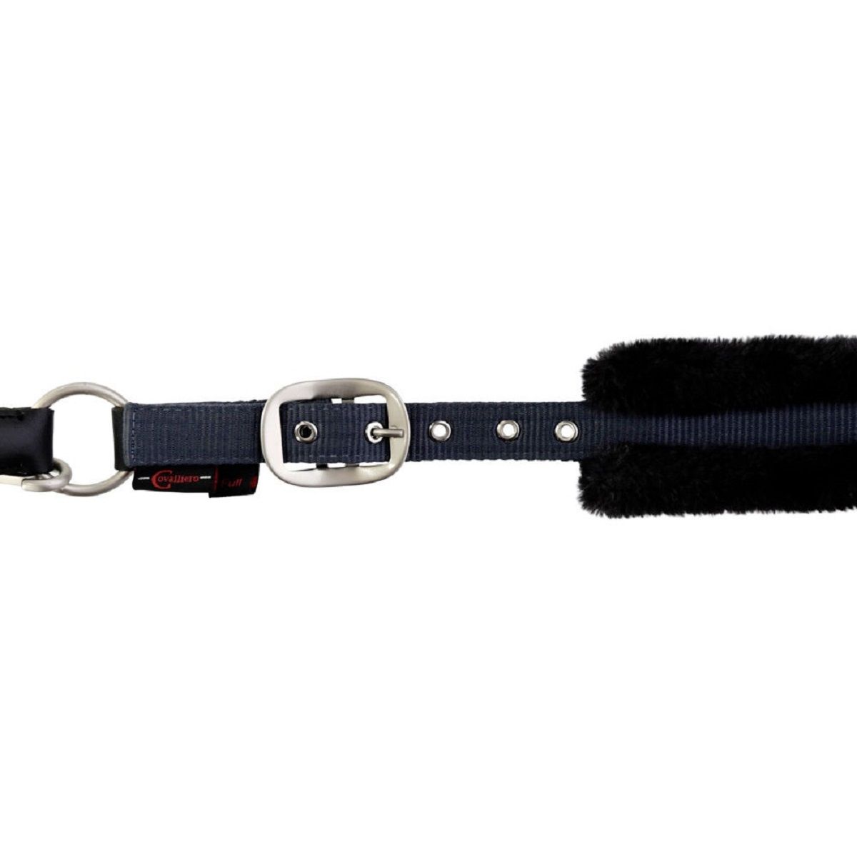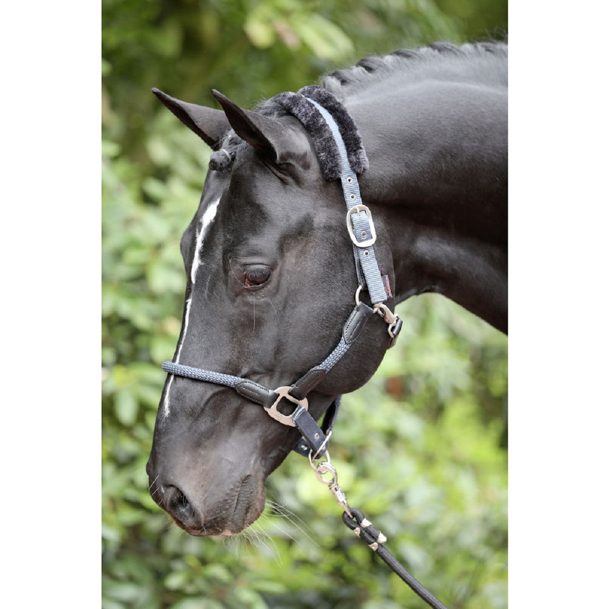 Le licol Cordano de Covalliero se caractérise par une combinaison intéressante de bretelles rondes et plates dans un design particulièrement attrayant. Fabriqué dans un matériau résistant à l'usure avec des coutures particulièrement solides, le licol Cordano est équipé d'une sangle buccale et de montants réglables avec une boucle. Le licol a une ouverture et une fermeture pratiques avec des mousquetons. La boucle est solide et résistante à la tension. Pour un confort maximal du cheval, les montants sont rembourrés de fourrure synthétique. Couleur bleu fumée.