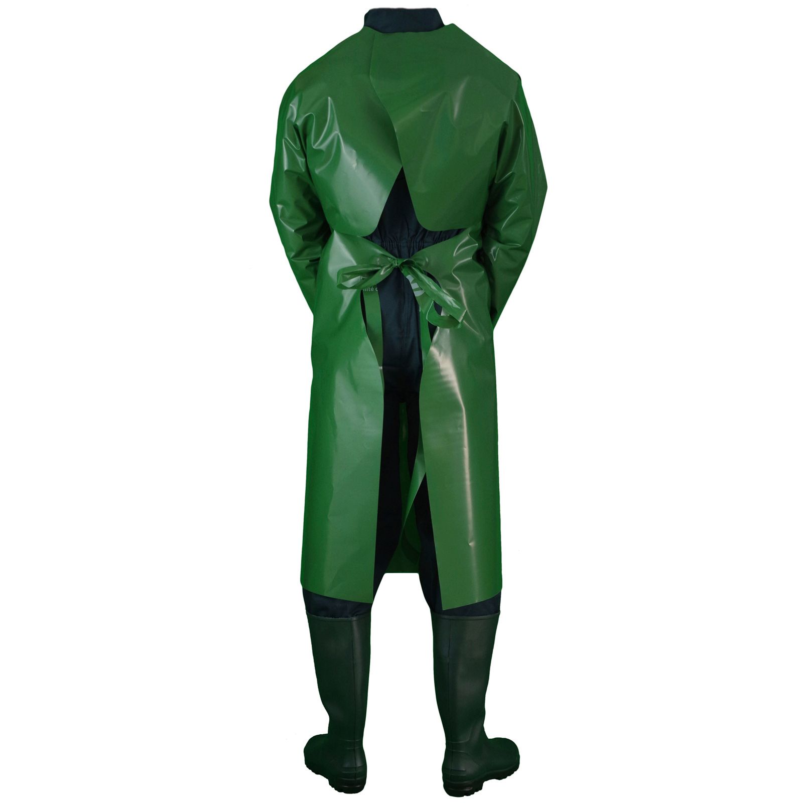 La transformation de produits chimiques ou phytosanitaires doit toujours être effectuée avec une protection maximale pour l'opérateur. Notre tablier chimique est fabriqué conformément aux directives du BVL sur la manipulation en toute sécurité des produits chimiques et phytosanitaires. Fabriqué en polyéthylène, le tablier chimique à manches longues offre une protection étendue à l'opérateur, y compris aux bras, à l'avant, y compris aux jambes, et partiellement au dos. Grâce à ses caractéristiques uniques, le tablier est particulièrement adapté à une utilisation dans l'agriculture, la viticulture et l'arboriculture fruitière, et dans toutes les opérations où il existe un risque de contact direct avec des substances chimiques ou nocives.