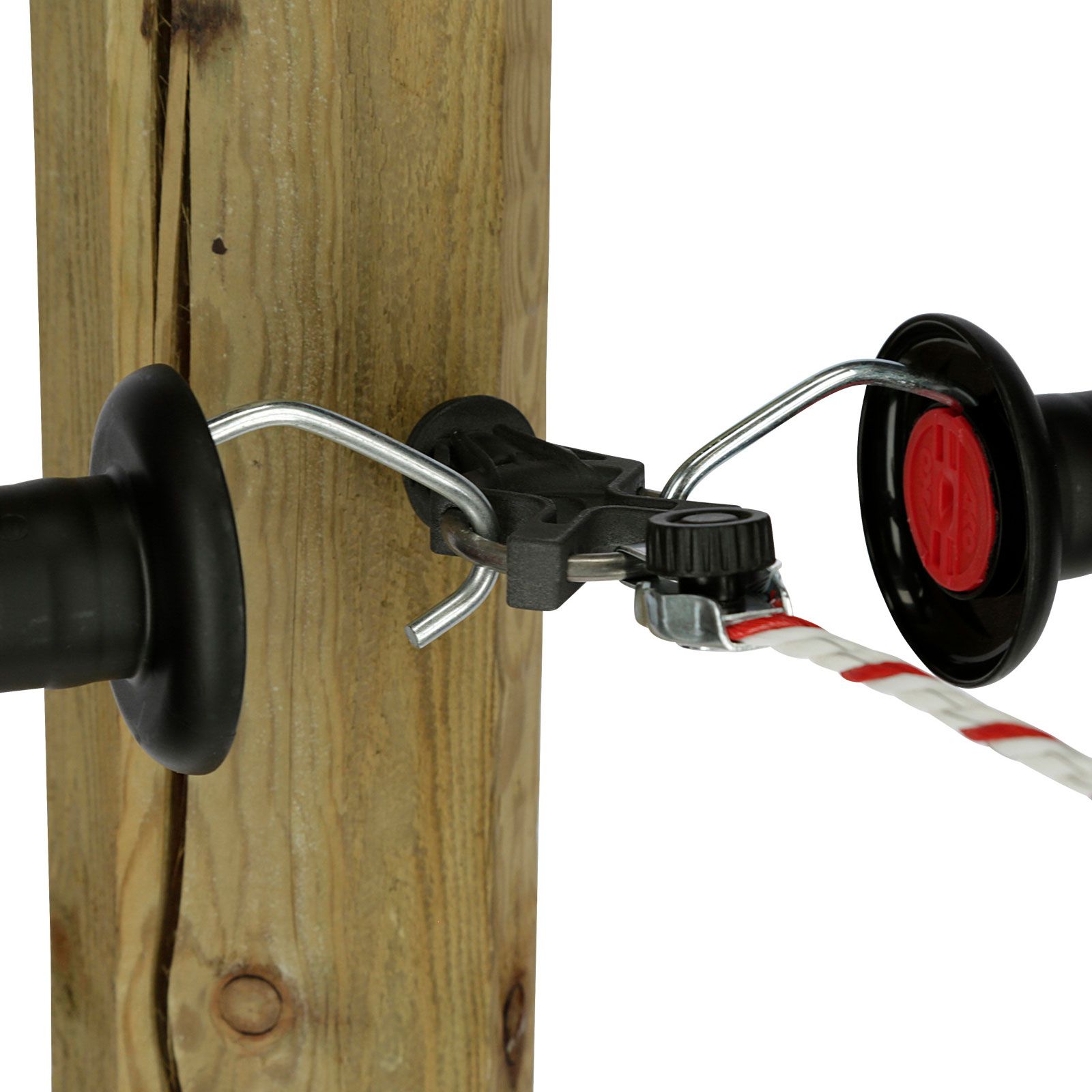 Isolateurs de clôture en pack économique avec trois points de fixation pour les poignées ou le matériel conducteur.