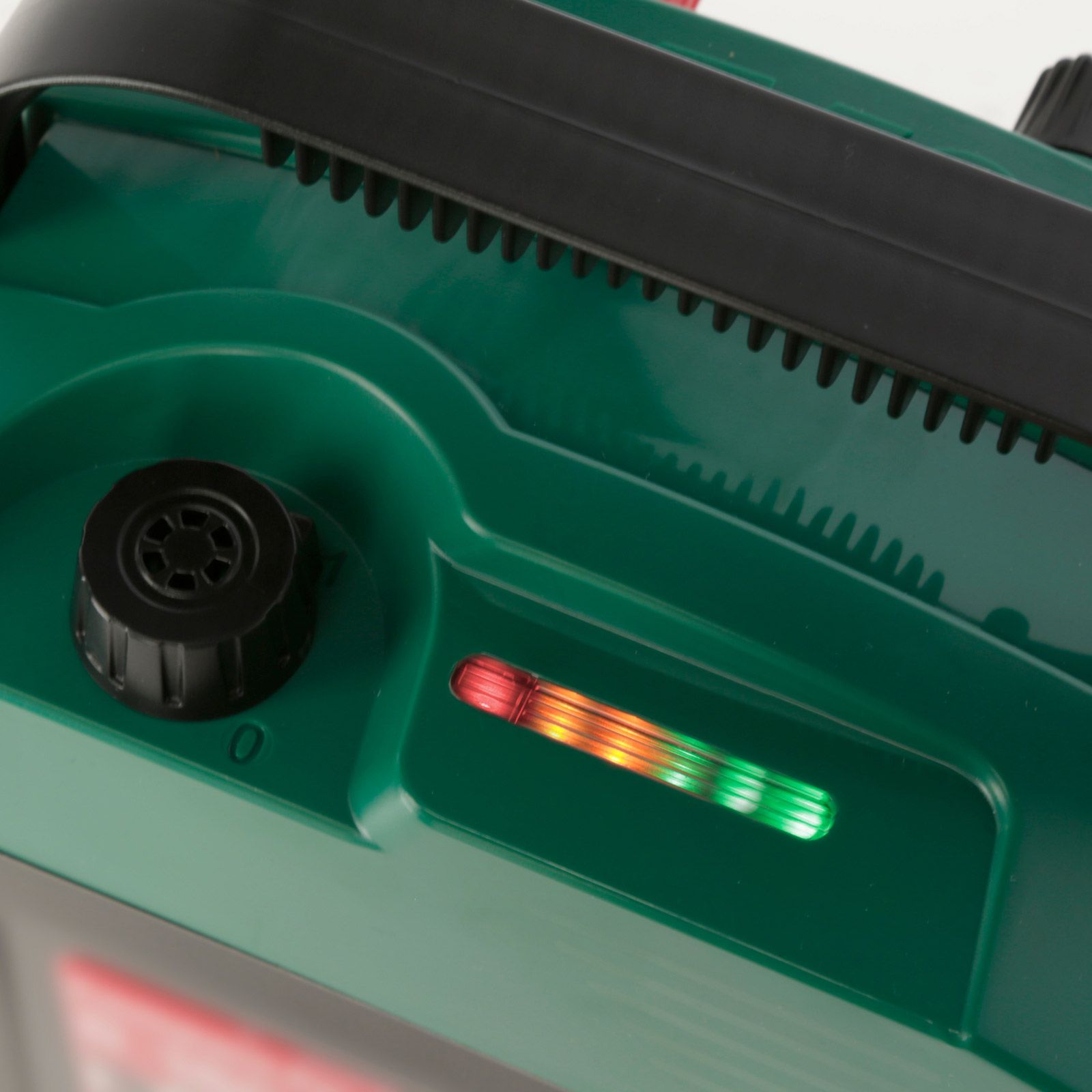 Le Compact Power B180 d'AKO est doté d'un interrupteur marche/arrêt intégré et d'une barre de 6 LED pour un contrôle immédiat de la clôture et de l'état de la tension de la batterie. Le boîtier robuste a été développé spécifiquement pour une utilisation en extérieur, et est extrêmement robuste et résistant aux intempéries. De taille compacte, l'électrificateur est doté d'une poignée de transport pratique. Contrôlé par microprocesseur, l'appareil dispose également d'un système de protection contre les décharges profondes de 12V.