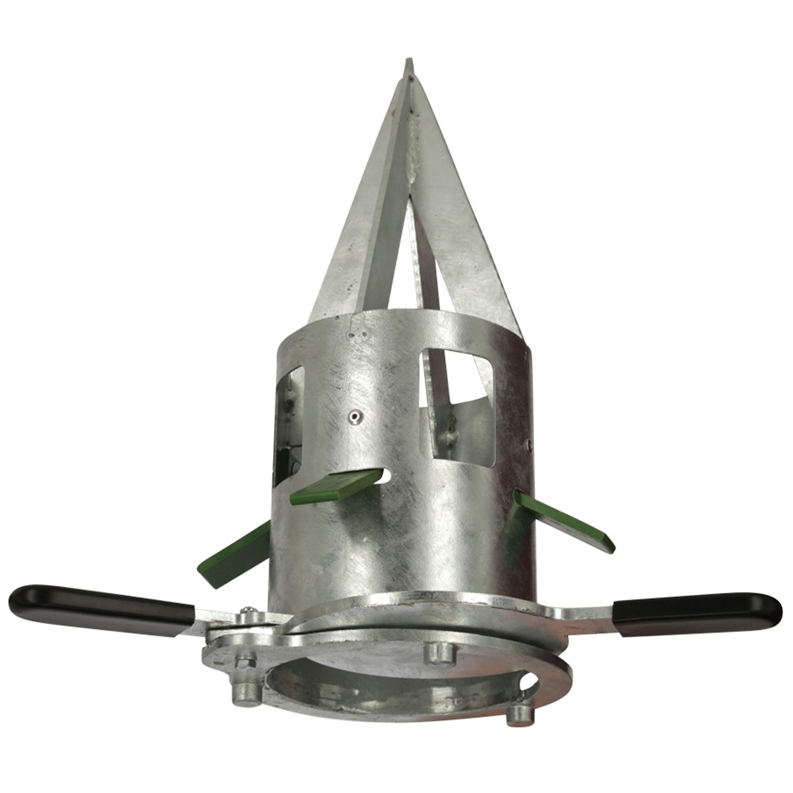 La vanne de vidange pratique en métal galvanisé rend la vidange du Big Bag extrêmement facile et contrôlée. Grâce au verseur verrouillable, vous pouvez régler le débit de sortie et contrôler la vitesse de l'évacuation. L'installation est extrêmement rapide, il suffit de placer la vanne sur le point de décharge souhaité. La pointe conique permet de percer le tissu, tandis que les crochets permettent de fixer fermement la sortie au sac. La vanne de sortie pour Big Bag en métal galvanisé est adaptée à l'utilisation d'aliments pour animaux, de graines, de céréales, d'engrais et de produits similaires.