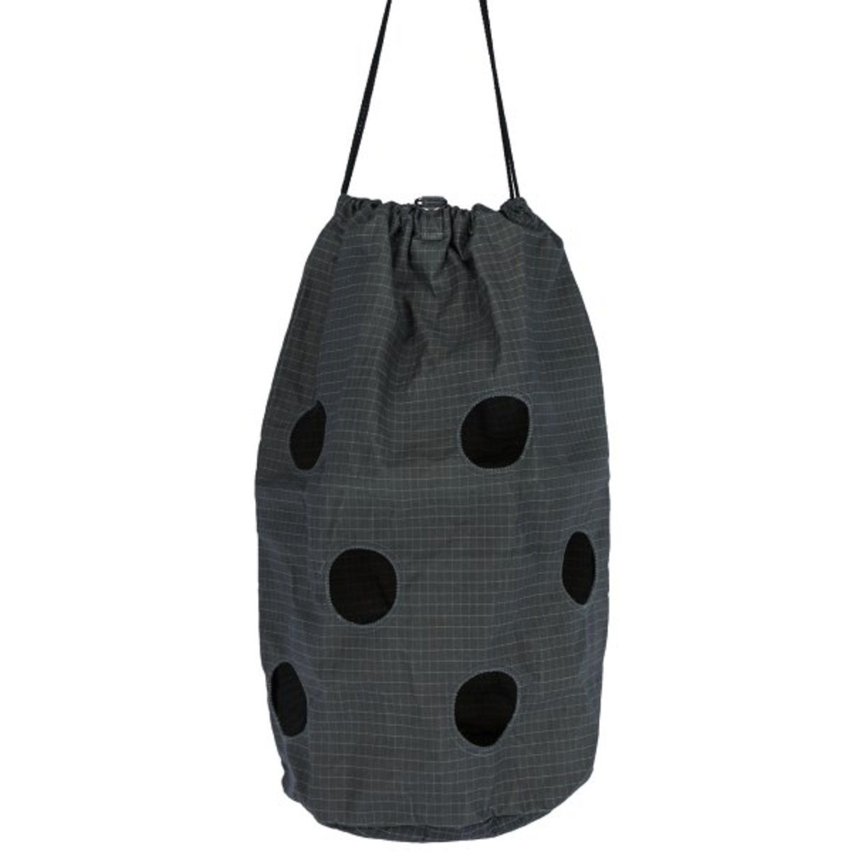 Le nouveau HayBag en coton de Kerbl réunit de nombreux avantages en un seul produit. Contrairement à l'alimentation au foin à partir du sol, le sac à foin permet de réduire la perte de fourrage d'environ 15% et favorise en outre une alimentation lente et adaptée au cheval. Le sac à foin HayBag est facile à remplir sans aide extérieure. De plus, grâce à sa surface lisse, il présente moins de risques de blessures que les filets à foin, par exemple. Le HayBag peut être utilisé dans de nombreux domaines: dans le box du cheval, au pré, dans la remorque et en compétition, ce sac à foin est très apprécié. Le diamètre des trous est d'environ 8 cm, espacés de 20 cm.