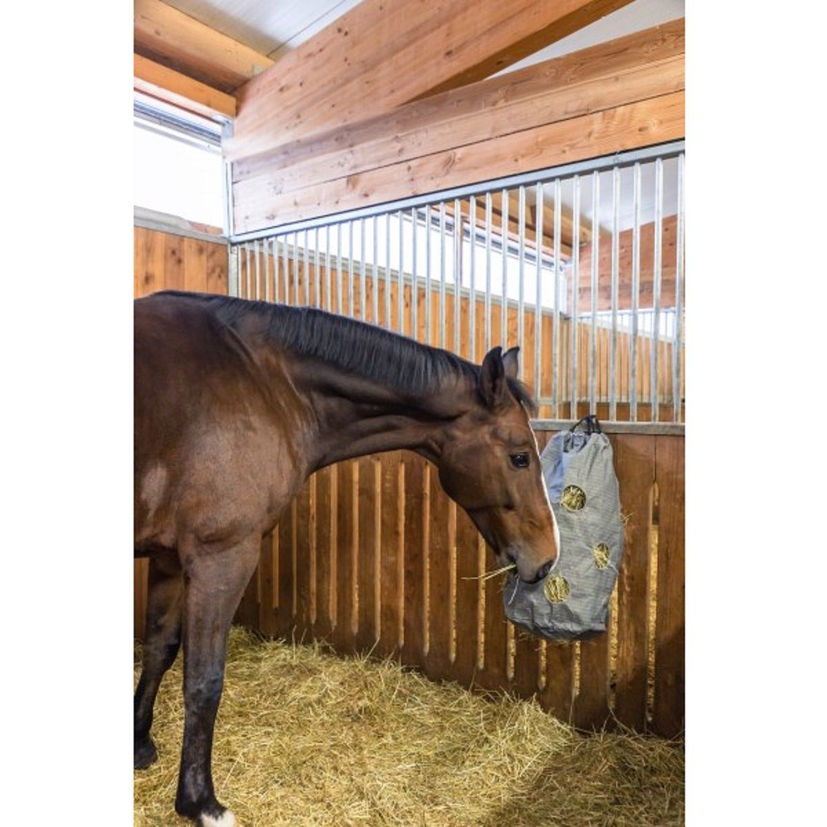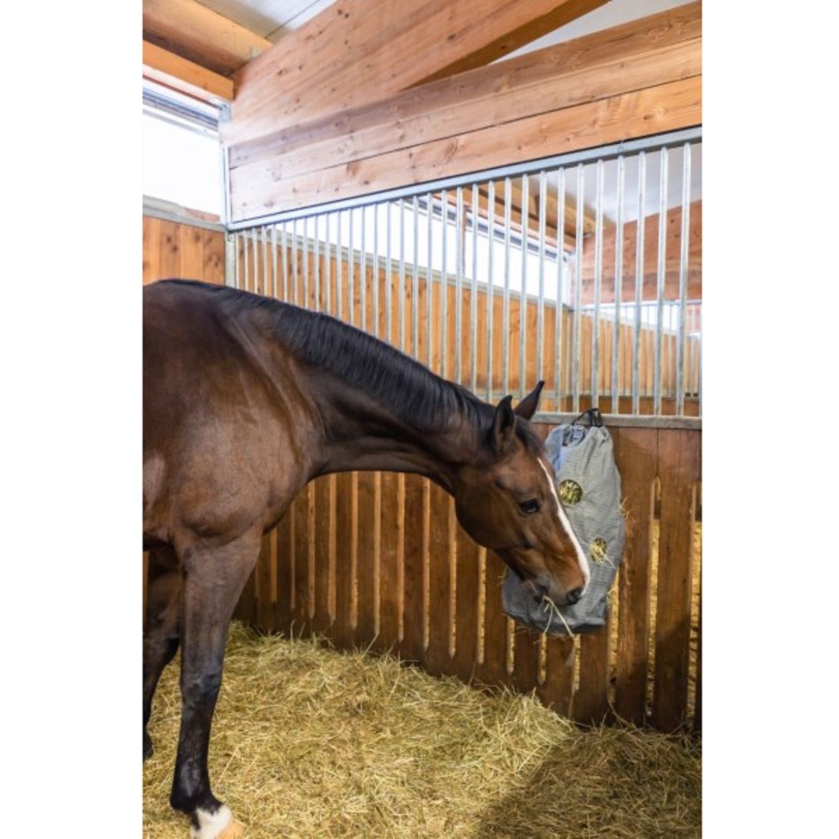 - Favorise une alimentation en foin adaptée au cheval