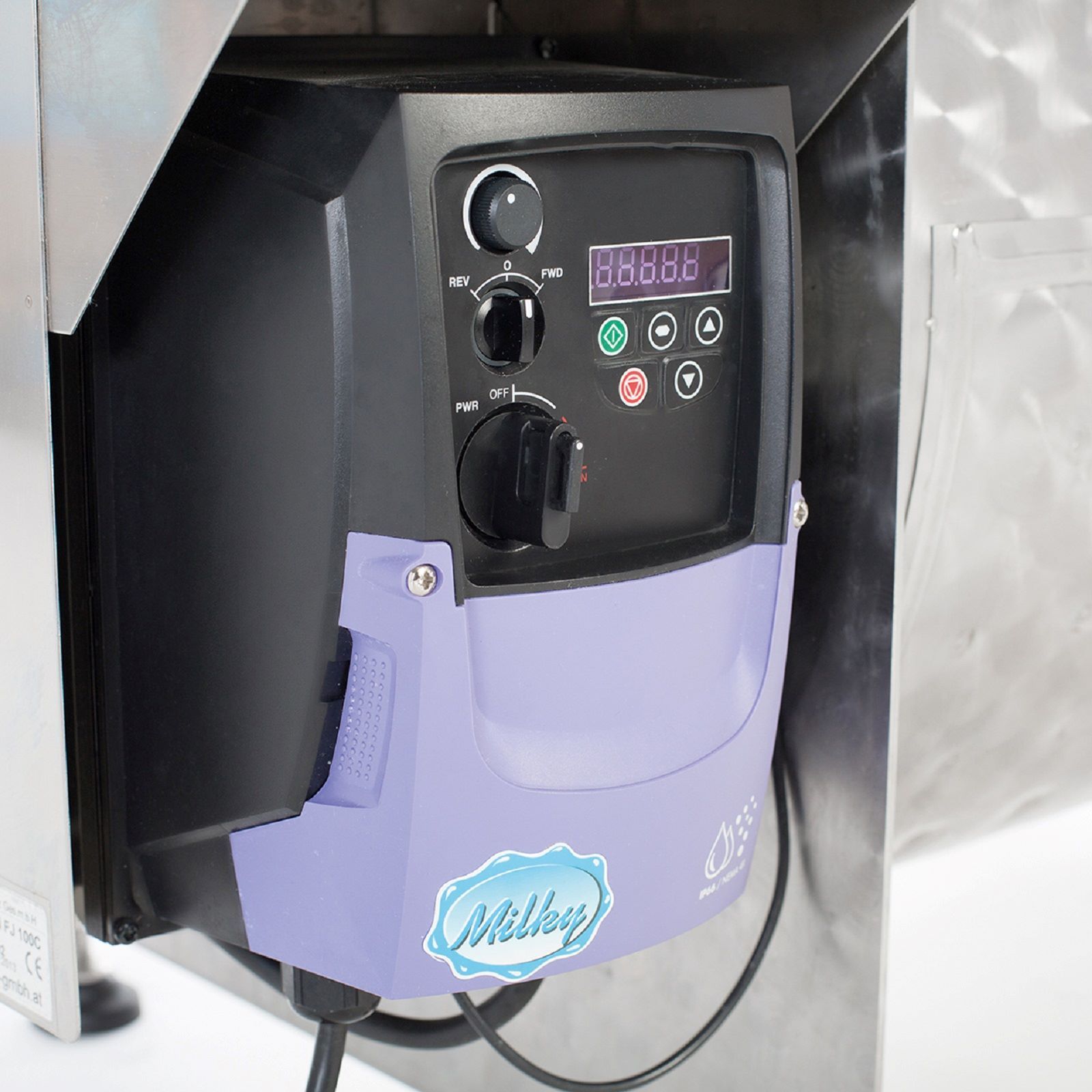 La Baratte électrique Milky FJ 100 C est idéale pour une utilisation professionnelle et semi-professionnelle. La baratte électrique permet de traiter 15 à 50 litres de crème / crème fouettée en 20 à 40 minutes.