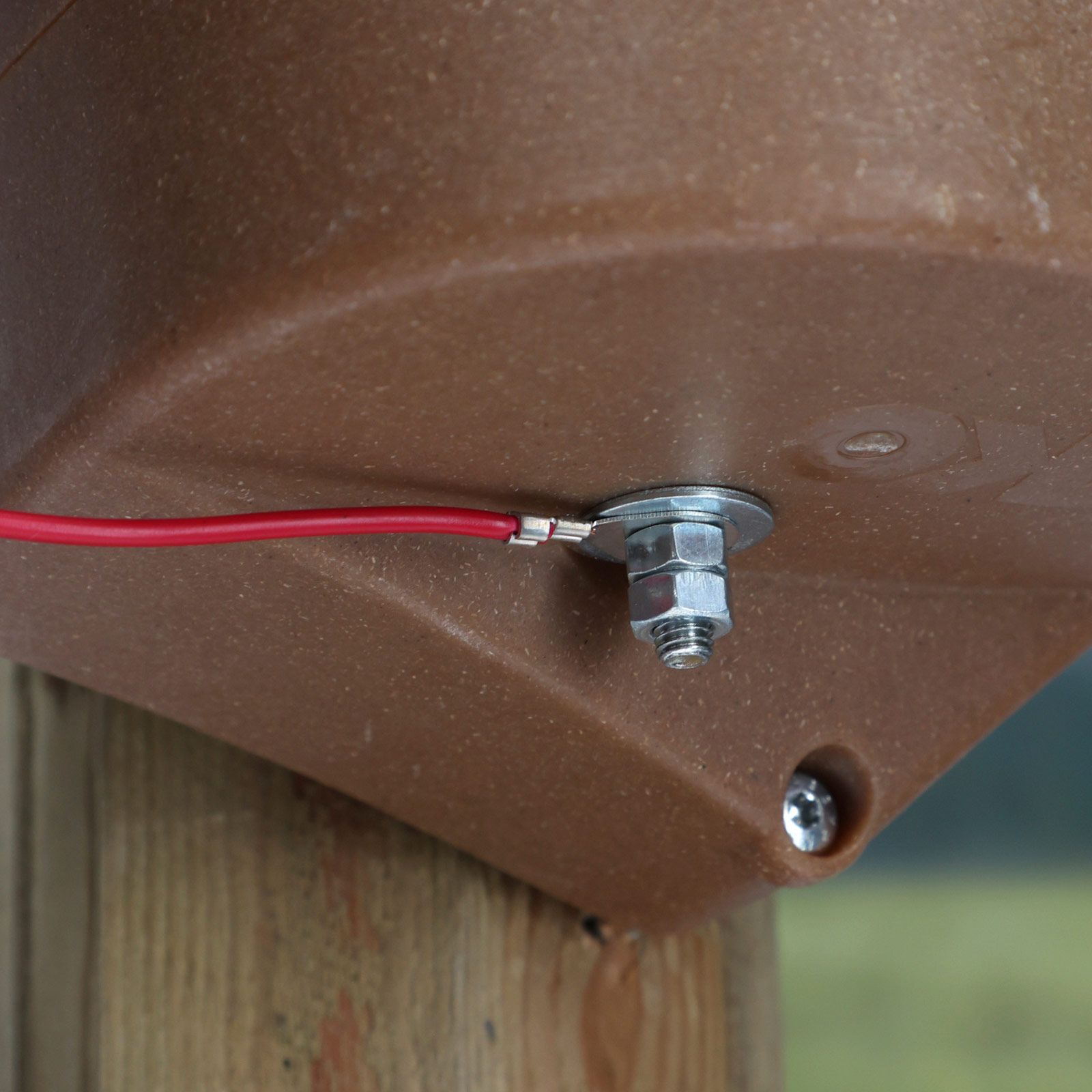 Une attention particulière a été accordée au design, qui donne un effet bois grâce à de petits copeaux de bois naturel dans le bioplastique. Le frein intégré assure également une introduction contrôlée du matériau conducteur et évite les blessures et les dommages. Le système FLEXIGATE se caractérise par un boîtier robuste au design compact et moderne. Le câble de raccordement fourni permet une réalisation optimale des contacts et une électrification continue du portail. Grâce aux vis incluses, l'installation sur le poteau en bois est extrêmement rapide. Le matériau conducteur de haute qualité avec nos fils TriCond éprouvés garantit une conductivité optimale à tout moment - disponible avec un ruban de 40 mm de large ou un câble de 6 mm. Le ruban de 40 mm de large peut être tourné de 90 degrés dans la poignée et peut donc être adapté individuellement à la direction de la fixation de la poignée -> le ruban large est toujours vertical et peut donc être mieux ressenti. Le système de portail FLEXIGATE est extensible jusqu'à 6 mètres de long, et le montage est possible des deux côtés (ouverture à droite ou à gauche). Avec une attention particulière pour l'environnement, le FLEXIGATE green est livré dans un emballage en carton 100% recyclé. Produit de qualité "Made in Germany".