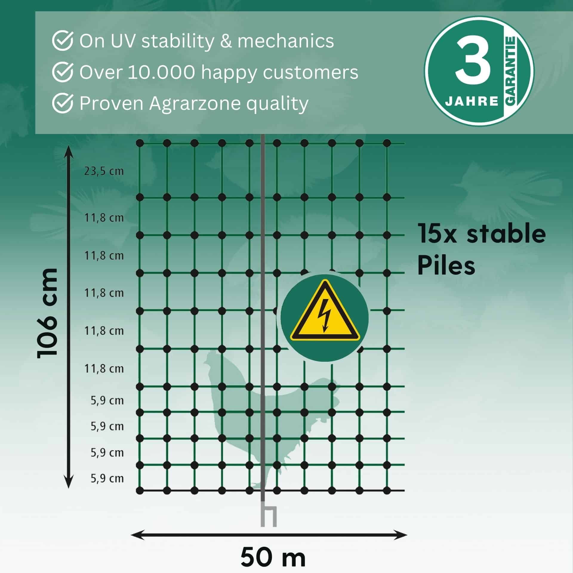 Filet pour poules Agrarzone Classic électrifié, double pointe, vert 50 m x 106 cm