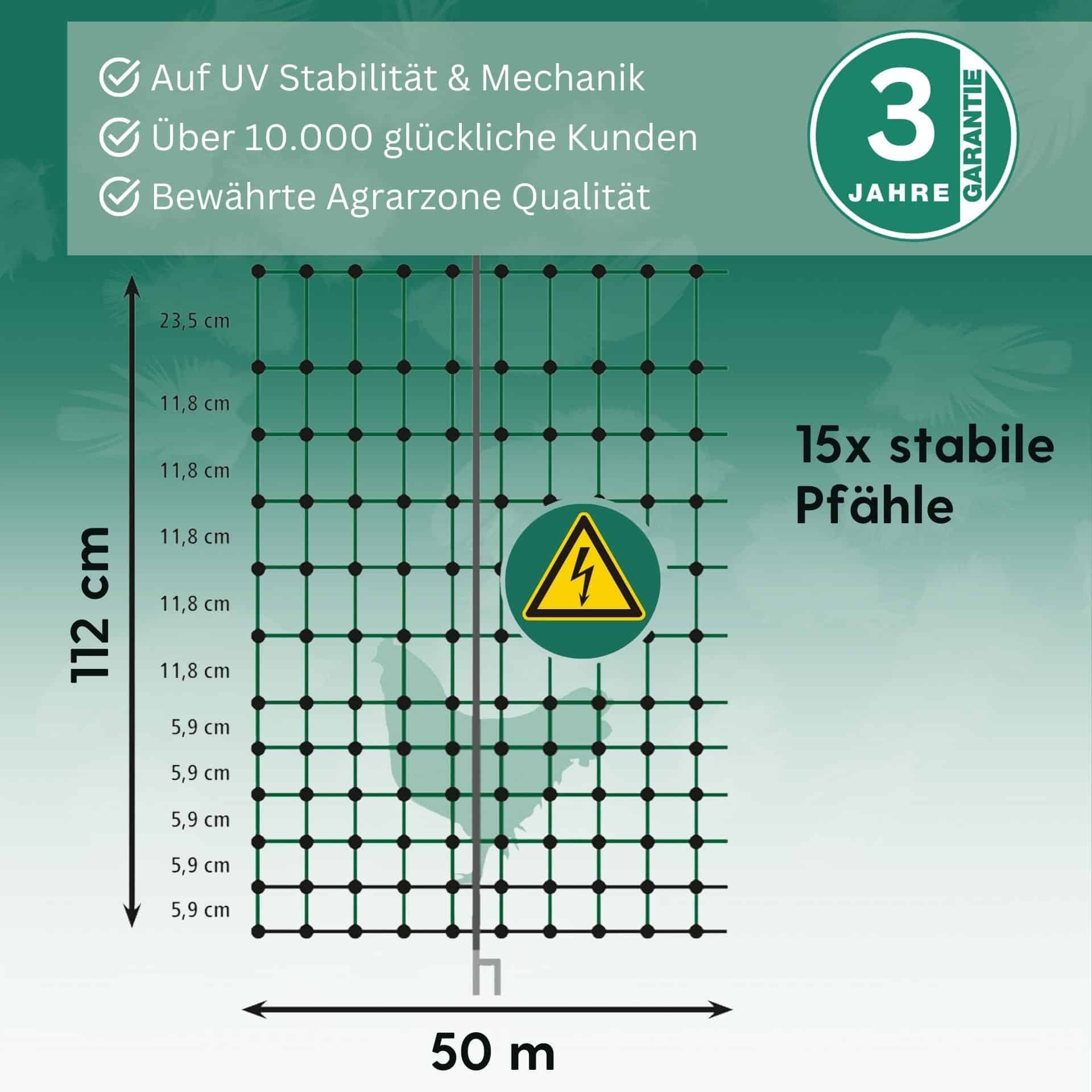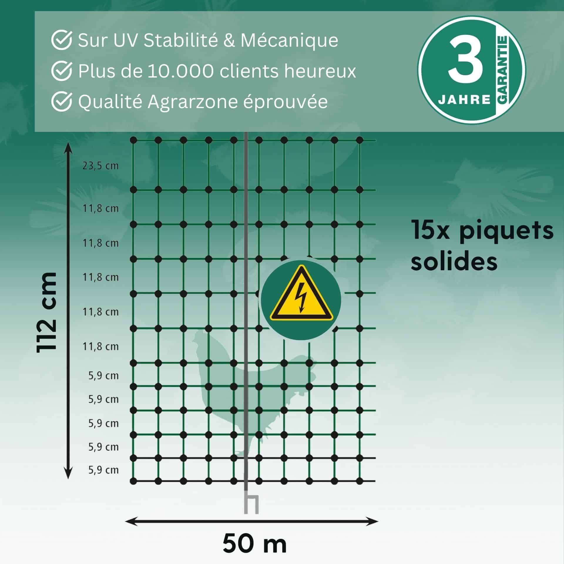 Filet pour poules Agrarzone Classic électrifié, double pointe, vert 50 m x 112 cm