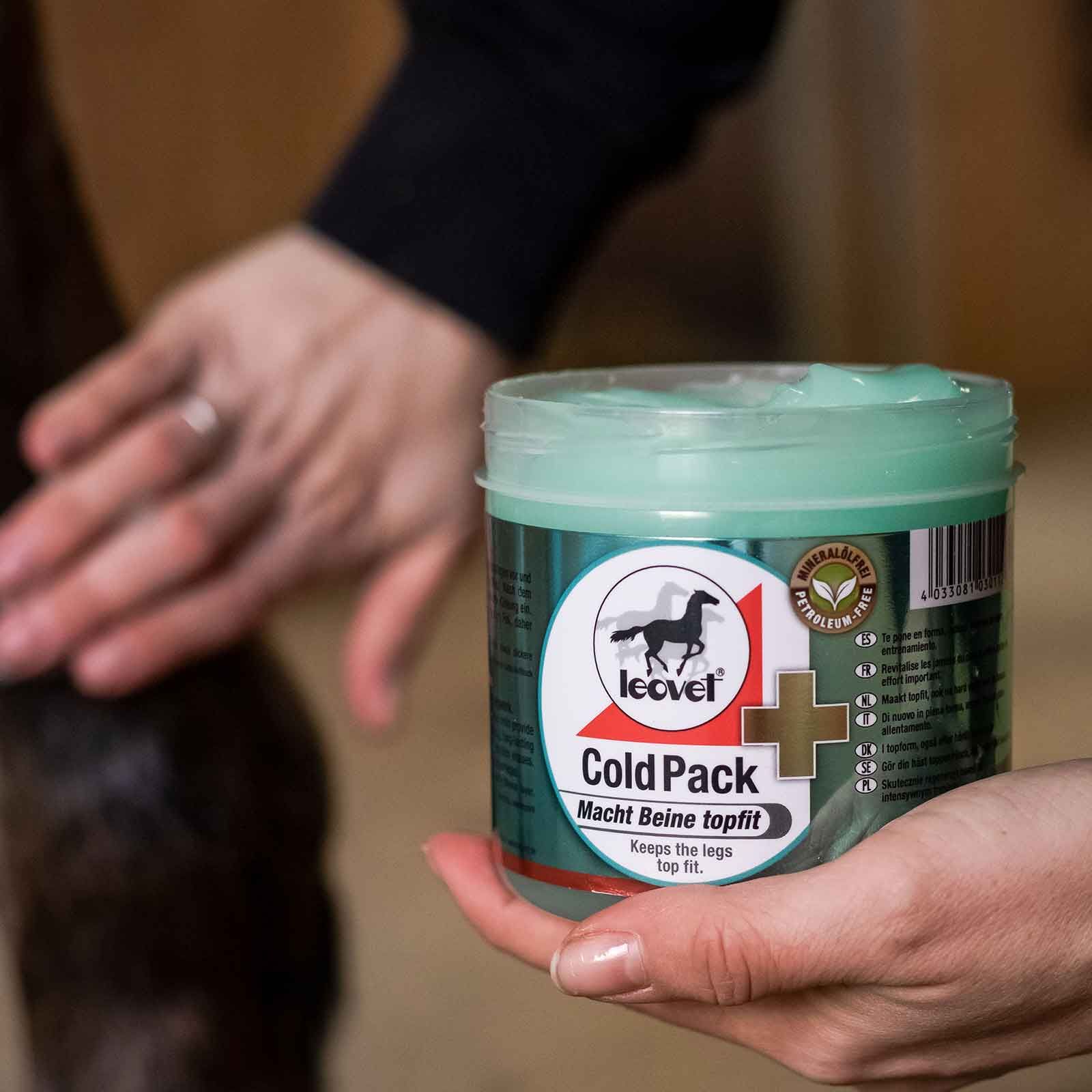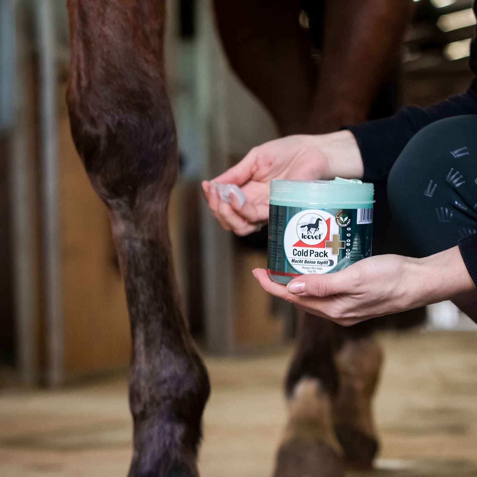 La crème musculaire pour chevaux Leovet Cold Pack, appliquée après le travail ou l'entraînement, est un véritable plaisir pour les muscles fatigués. A base d'arnica, de menthol et de romarin, le Cold Pack de Leovet a un effet biphasique immédiat sur les parties traitées. Après application, une intense sensation de fraîcheur et de revitalisation se répand, suivie d'une agréable chaleur qui détend les muscles. La pommade pour chevaux de Leovet est particulièrement adaptée au traitement des membres, favorise la circulation et améliore l'état du cheval. D'utilisation polyvalente, il convient aussi bien aux chevaux qu'aux cavaliers.
