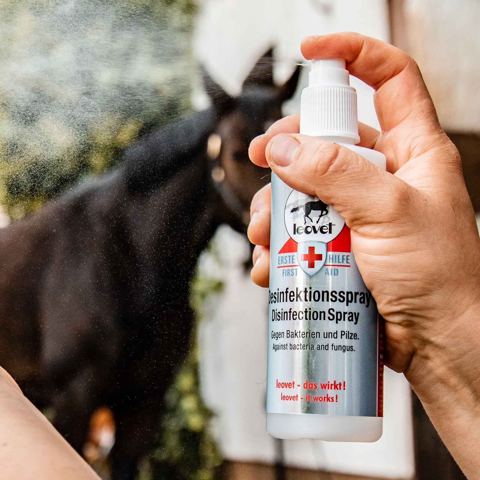 Le spray désinfectant Leovet ne doit jamais manquer dans l'écurie. Extrêmement efficace pour combattre les agents pathogènes, il convient au traitement initial des plaies. Adapté aux humains et aux animaux, le spray désinfectant Leovet est incolore et désinfecte efficacement en peu de temps. Durable et polyvalent, il combat les bactéries, les virus et les champignons et convient au traitement des surfaces dans l'écurie.