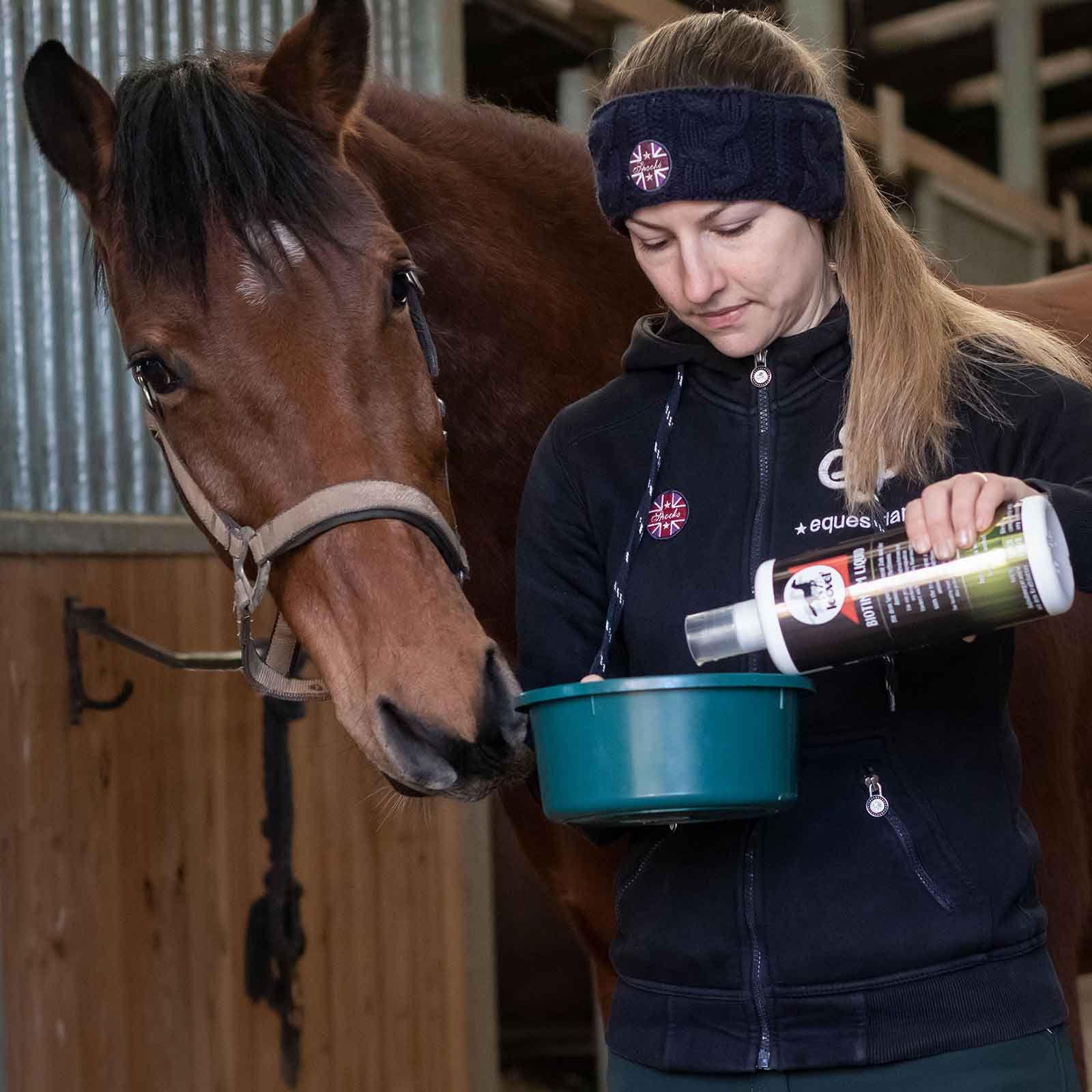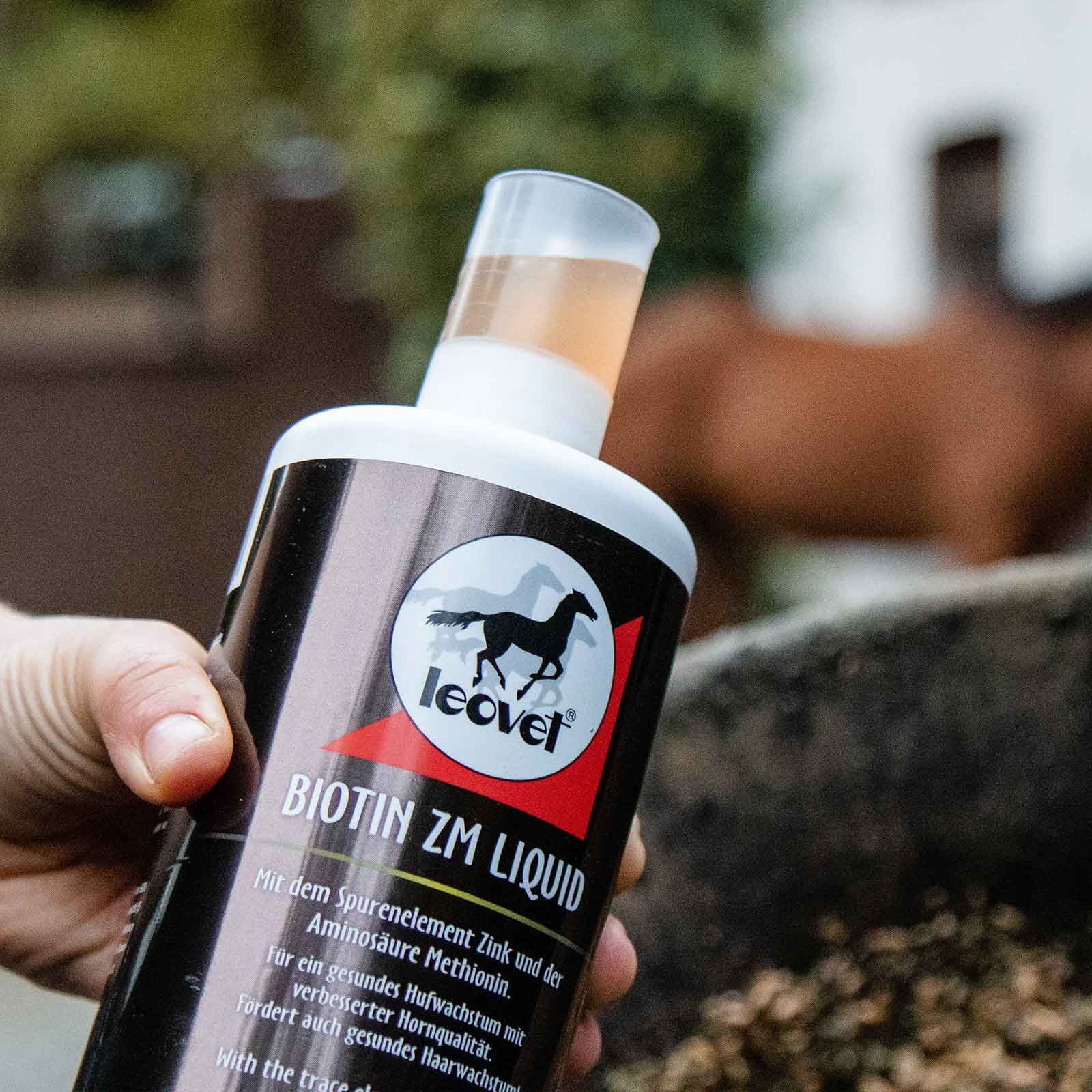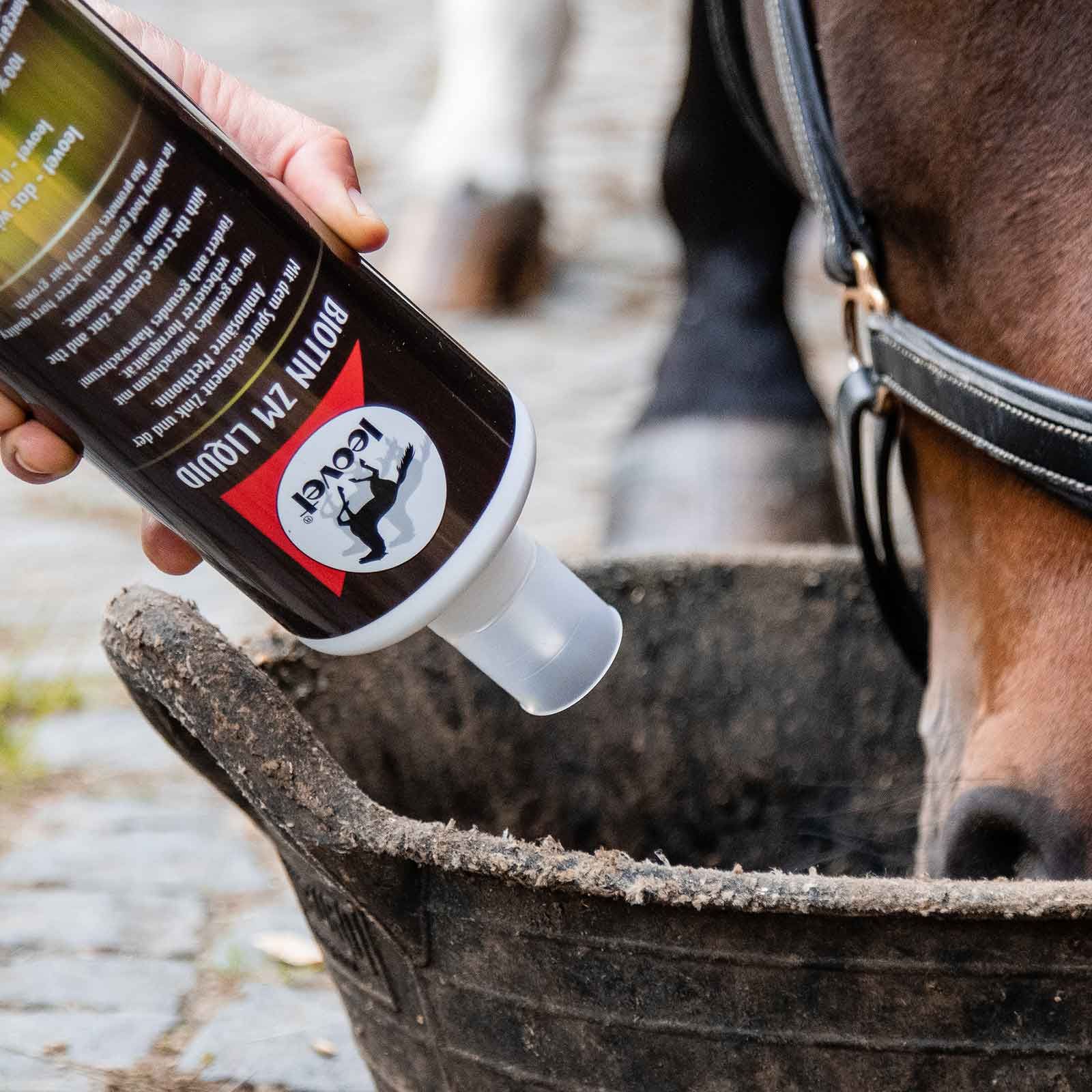 - Complément alimentaire pour chevaux contenant de la biotine et du zinc.
