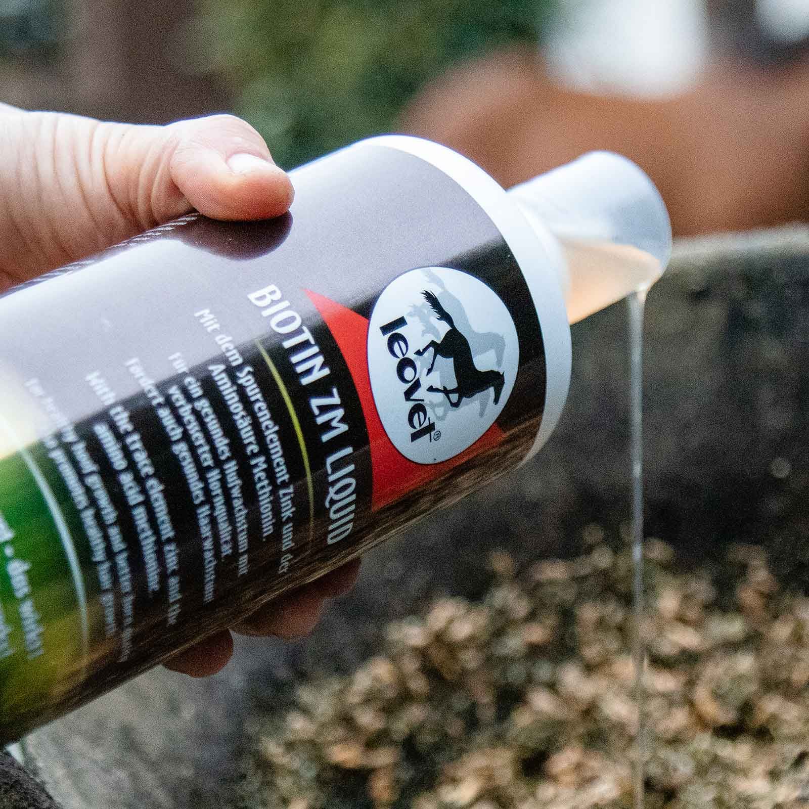 Biotin ZM Liquid de Leovet aide et soutient la croissance saine du sabot du cheval en activant la formation de kératine et en améliorant la qualité de la couronne. L'administration de Biotin ZM a également un effet positif sur l'état du pelage, de la peau et de la crinière, améliorant leur apparence et leur résistance. Les principes actifs contenus dans Biotn ZW Liquid de Leovet sont indiqués pour le traitement des sabots fragiles ou endommagés. Le zinc, quant à lui, soutient le système immunitaire et la croissance cellulaire. Sous forme liquide, la Biotine ZM de Leovet est adaptée à une administration combinée avec l'alimentation, avec une absorption garantie à 100%.