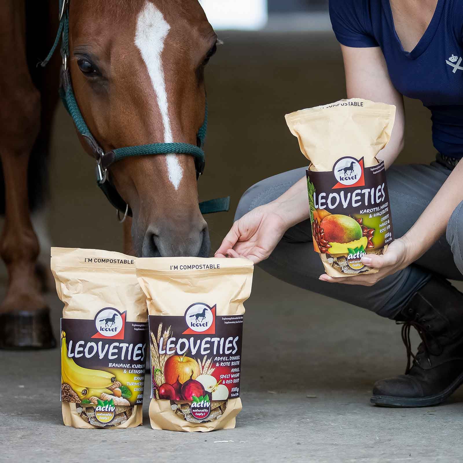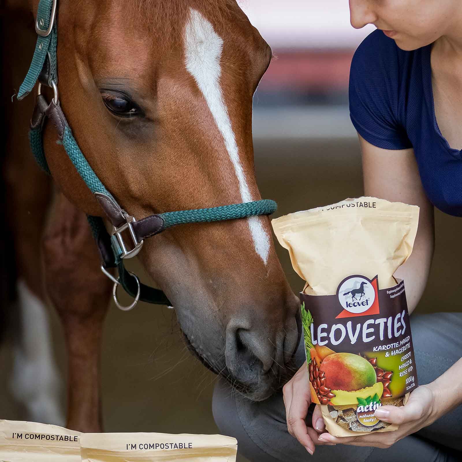 Les friandises pour chevaux Leoveties de Leovet constituent une récompense saine et savoureuse pour votre cheval. Préparés avec la meilleure sélection d'ingrédients naturels, les biscuits pour chevaux de Leovet sont un concentré de vitamines et de minéraux. La carotte, riche en bêta-carotène, assure une peau saine, un pelage brillant et des sabots sains et solides. La mangue a un effet vitalisant et équilibrant, tandis que le cynorrhodon soutient le système immunitaire. Préparés délicatement à basse température pour préserver les qualités nutritionnelles des ingrédients, les biscuits pour chevaux Leoveties sont respectueux de l'environnement, conditionnés dans un sachet refermable et compostable.