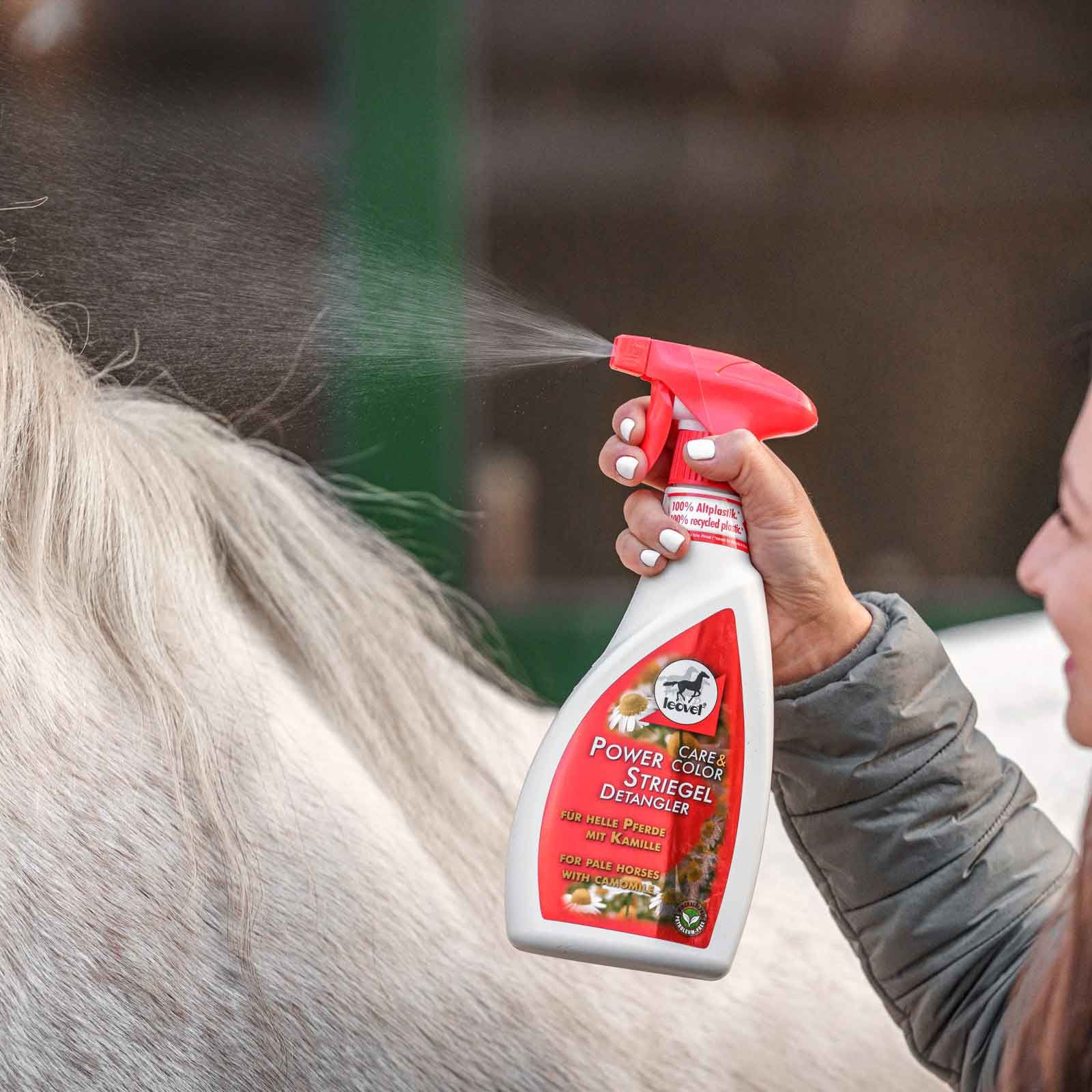 Le démêlant pour crins de cheval à la camomille de Leovet est un véritable soin de beauté pour votre cheval. La camomille romaine a un effet éclaircissant naturel sur le pelage et les crinières, donnant des reflets brillants et un éclat incroyable. L'effet démêlant élevé assure également un plus grand volume et une plus grande facilité de coiffage de la crinière et de la queue. Les filtres UV contenus protègent le manteau de la décoloration, tandis que le parfum délicat agit comme un répulsif pour les mouches et les insectes. Le démêlant pour crinière à la camomille de Leovet est conforme à la réglementation antidopage en vigueur et peut également être utilisé lors des tournois et des compétitions.