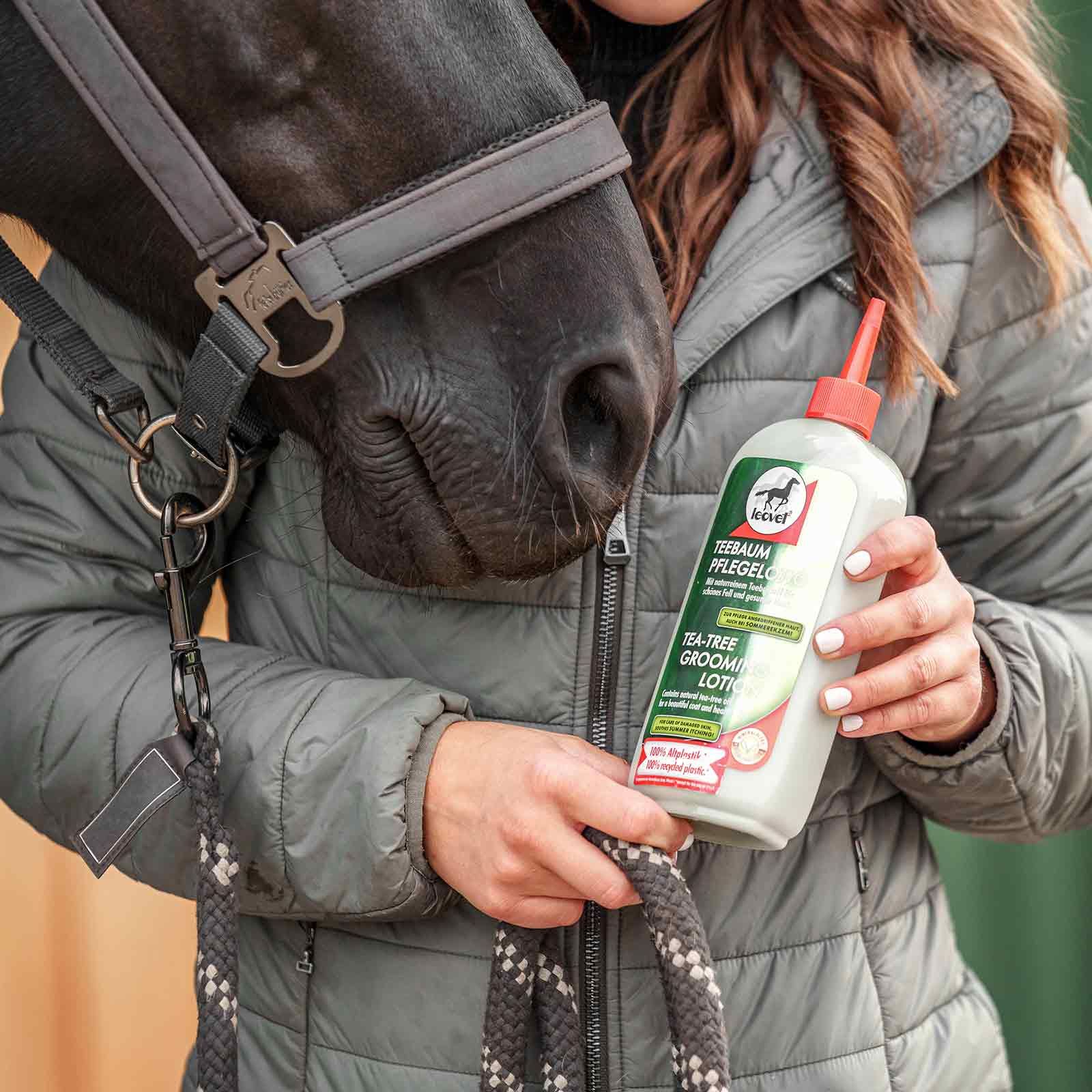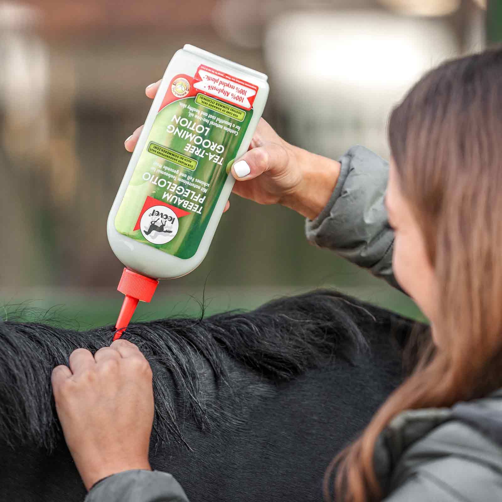 La lotion anti-démangeaison de Leovet est un véritable plaisir pour votre cheval. La formulation spéciale à base d'huile de théier apaise, hydrate et régénère la peau. Adaptée pour soulager les démangeaisons, même en cas d'eczéma d'été, la lotion de Leovet est efficace pour maintenir un pelage sain. Grâce à son effet rafraîchissant, la lotion anti-démangeaisons améliore le film protecteur naturel de la peau et favorise la repousse des cheveux. Conforme à la réglementation antidopage, il peut être utilisé en préparation de tournois ou d'événements.