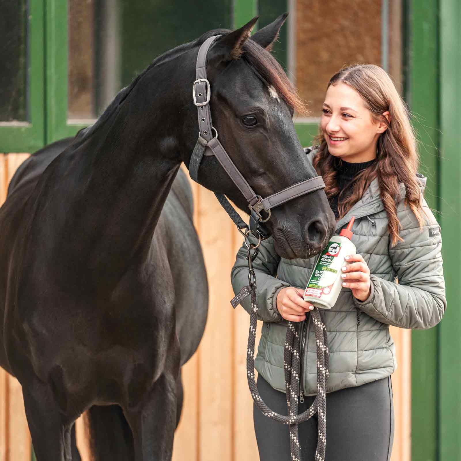 Leovet vous propose des produits de soins pour chevaux de première classe développés et fabriqués en Allemagne. Avec des ingrédients de haute qualité et des formules innovantes, vous gagnez du temps sur les soins et pouvez profiter de plus de moments avec votre cheval. Une gamme étendue, des soins des sabots aux soins du cuir, couvre tous les besoins. Des contrôles de qualité constants et des recherches scientifiques garantissent les normes les plus élevées. Faites confiance à l'application facile et à la longue durée de conservation des produits pour offrir à votre cheval le meilleur.