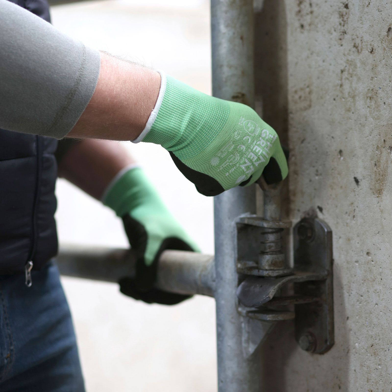 Les gants de travail THINKGREEN Universal de KERON sont fabriqués en 100% polyester recyclé (jauge 13), en tricotage fin sans couture et sont particulièrement adaptés à l'agriculture, la logistique et le jardinage. Dotés d'un revêtement en mousse de latex élastique, les gants de jardinage universels THINKGREEN se caractérisent par une sensibilité tactile optimale et un ajustement parfait. Grâce à la surface poreuse, la prise en main est particulièrement efficace. Lavable en machine jusqu'à 40 °C.