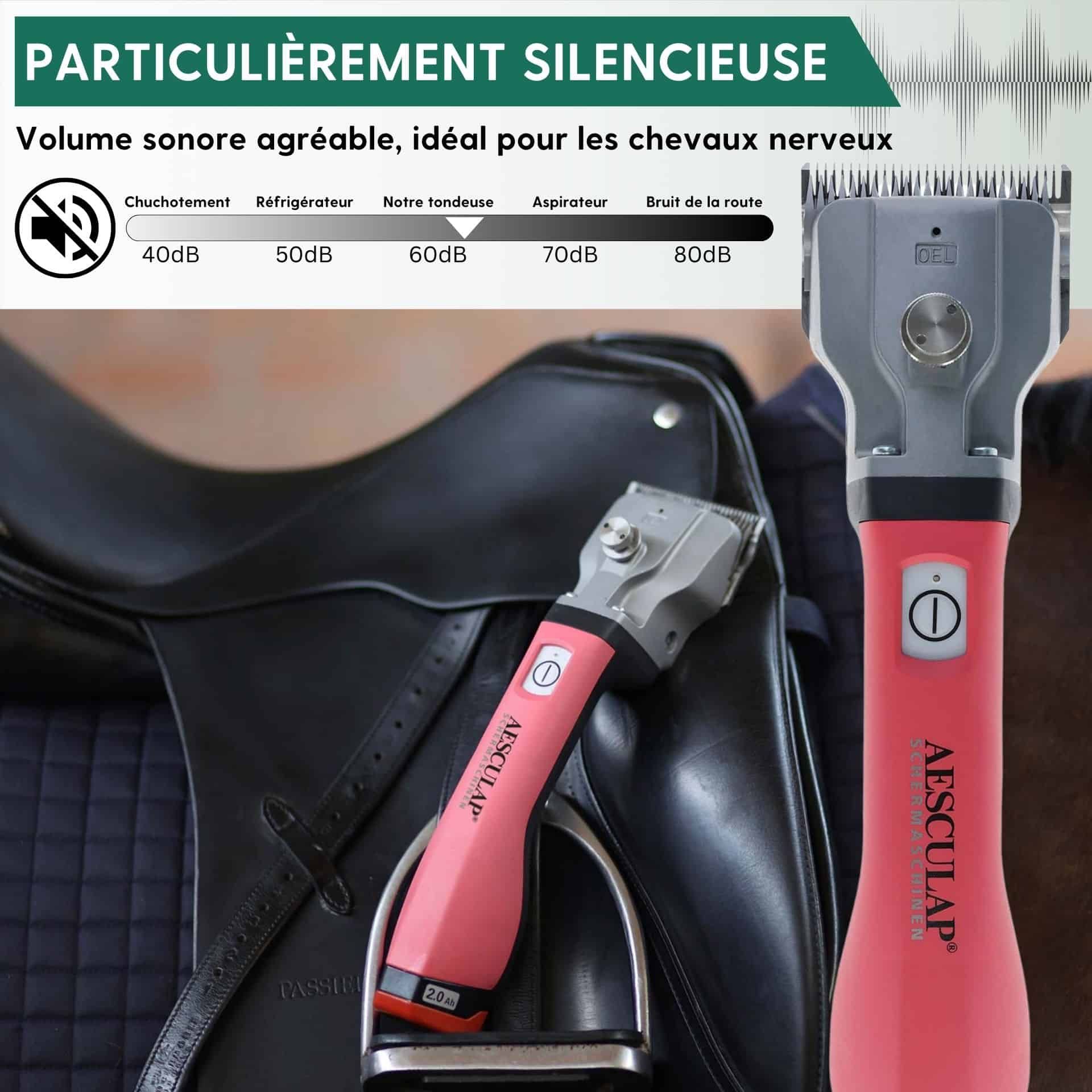 Tondeuse à batterie pour chevaux Aesculap Bonum rose à 2 batteries & torqui inclus