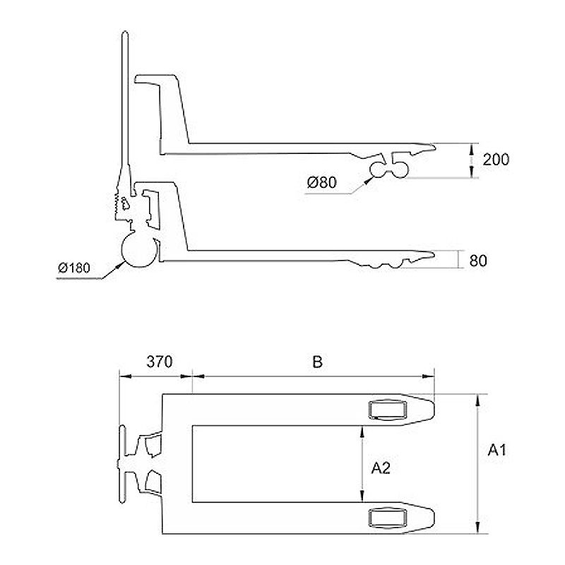 - Longueur des fourches: 1150 mm / capacité de charge de 2500 kg