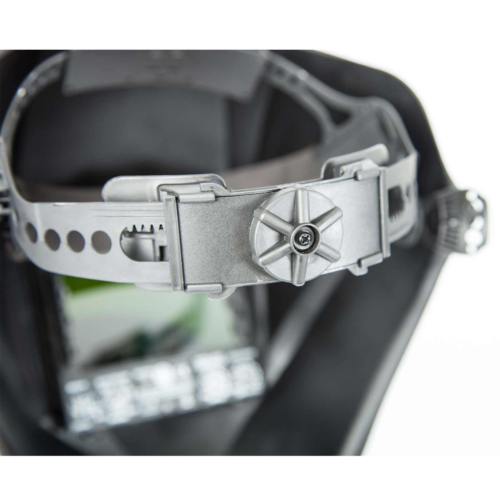 L'écran de soudure possède 2 zones de niveaux de protection réglables (degré d'obscurcissement pour une vision optimale, selon le procédé de soudage ou l'intensité de l'arc électrique). Ces zones, ainsi que la réponse (sensibilité) du champ de vision, sont réglables en continu à tout moment au moyen de régulateurs situés à l'intérieur du casque - une main reste libre pour la torche de soudure.