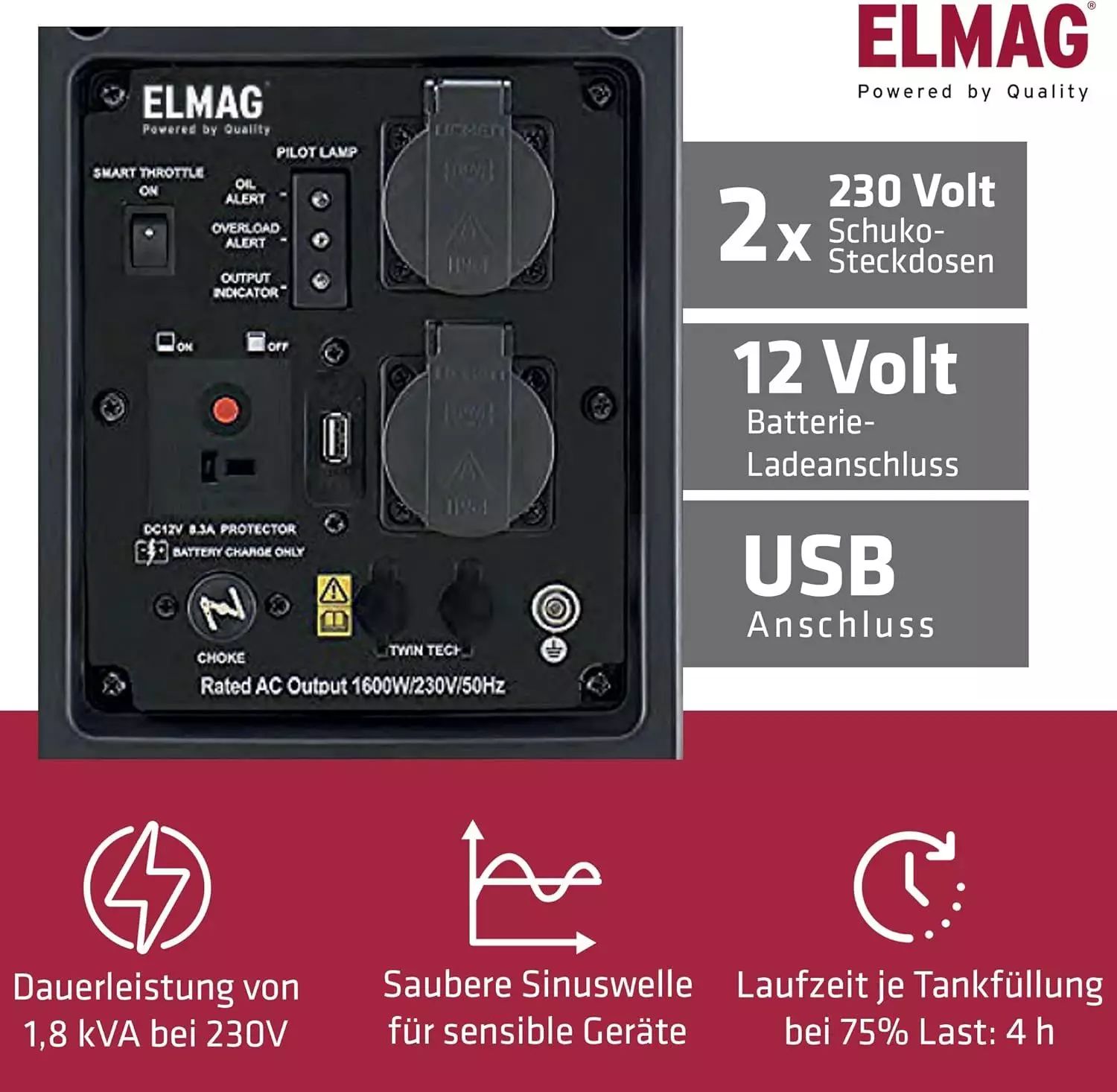 Groupe électrogène inverter Elmag SEBSS 2000Wi en un coup d'oeil: