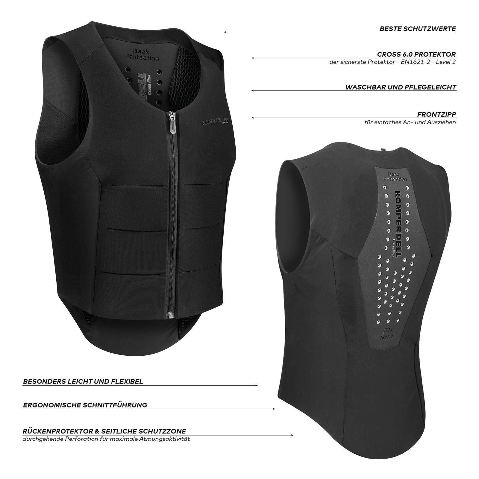 Encore plus léger, encore plus flexible, encore plus sûr ! Ce ne sont là que quelques-unes des caractéristiques de la protection dorsale Ballistic de Komperdell. Certifiée conforme à la stricte norme moto EN-1621-2 avec un niveau de protection 2, la protection dorsale Ballistic protège à la fois le dos, les côtes et la poitrine.Doté d'un design fin et compact et de zones latérales très flexibles, il garantit une liberté de mouvement totale pendant l'utilisation. La protection dorsale unisexe Komperdell Ballistic FlexFit Regular pour l'équitation est fabriquée à partir d'une technologie multicouche et offre une respirabilité maximale grâce à des perforations spéciales qui permettent à la sueur de s'évaporer. Léger et peu encombrant, grâce à la fermeture éclair frontale très pratique, il peut être porté avec la plus grande facilité.