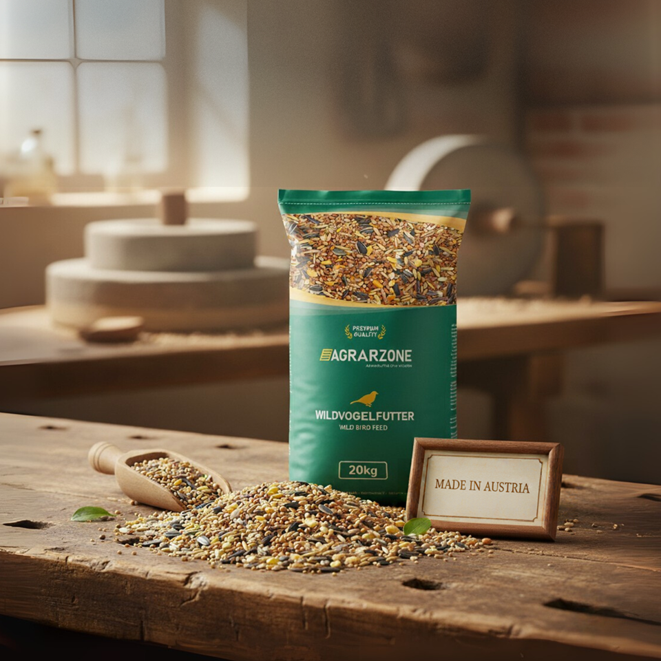 La qualité et le contrôle régulier des aliments pour oiseaux sauvages nous tiennent particulièrement à cœur. Pour ce faire, nous procédons à des certifications annuelles et à des processus d'amélioration internes permanents. Le fourrage en poudre est nettoyé plusieurs fois, exempt de poussière et contrôlé contre l'ambroisie. Il s'agit d'une nourriture naturelle pour toute l'année, fabriquée à partir d'ingrédients de haute qualité pour un apport optimal en nutriments à nos amis à plumes - sans conservateurs ni additifs, ni arômes artificiels. Les matières premières proviennent de la région.