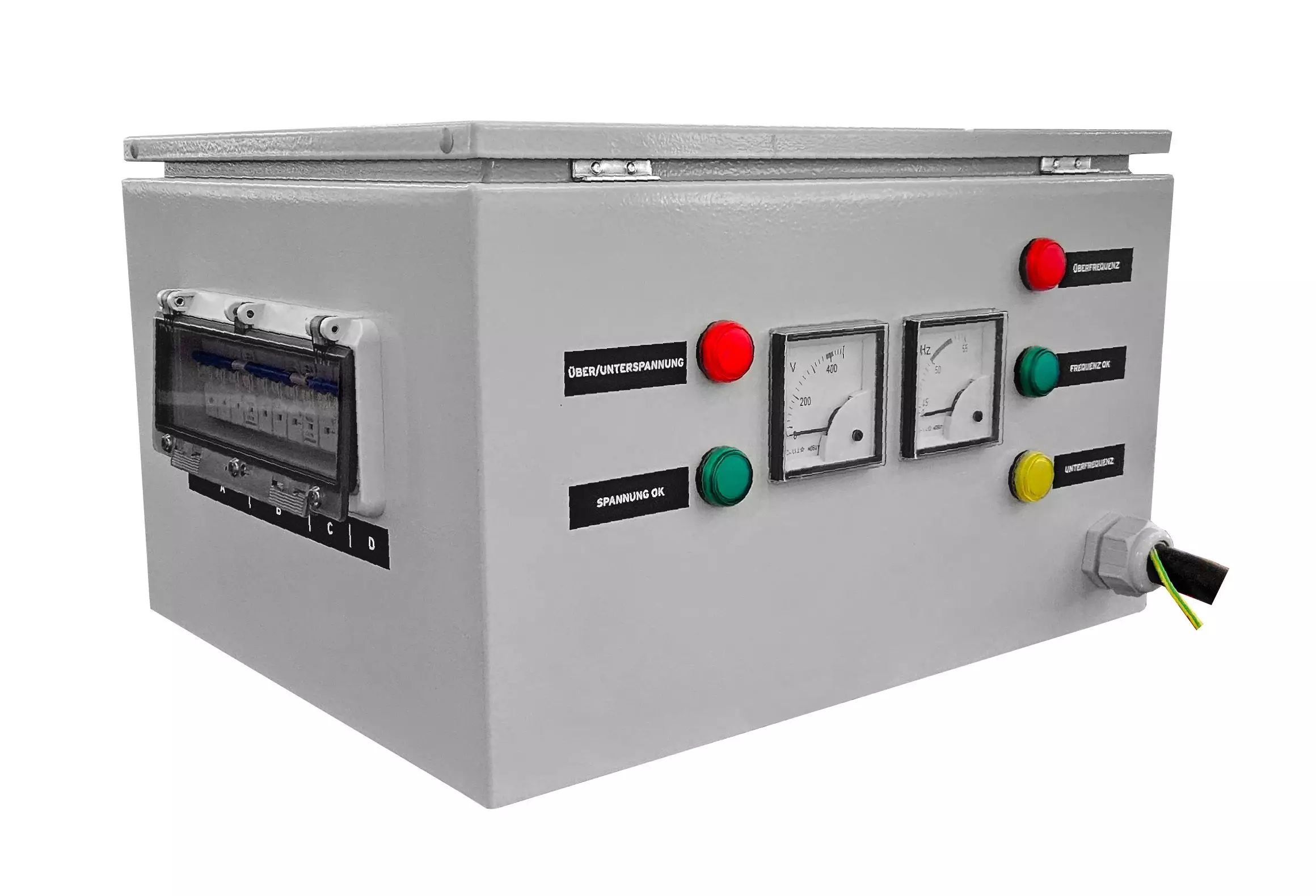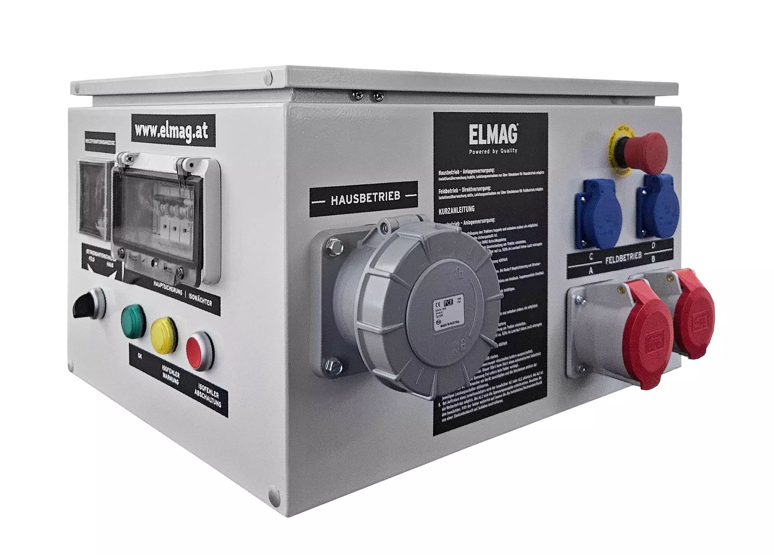 - Prises de courant (mode champ) : 2x Schuko 230 V, 1x CEE 16 A 400 V, 1x CEE 32 A 400 V