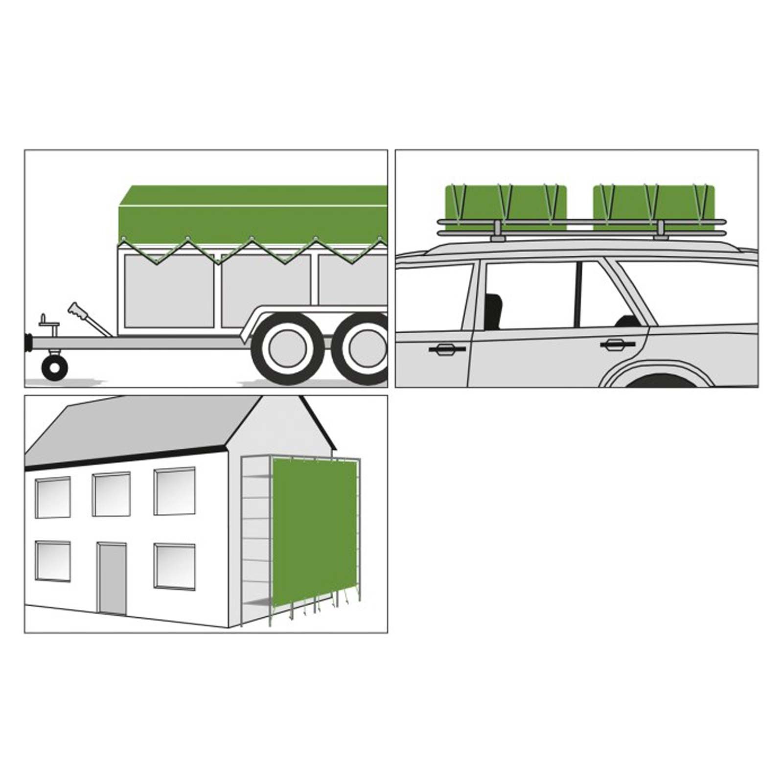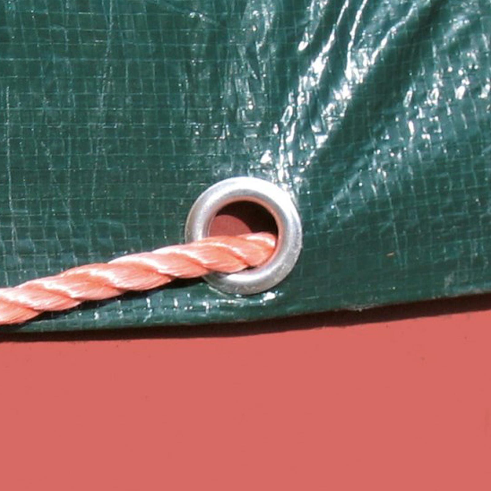 La bâche dispose d'œillets espacés de 100 cm, ce qui permet de la fixer de manière sûre et stable. De plus, elle est renforcée sur les bords. Cette bâche est facile à fixer et à retirer et peut être rangée de manière peu encombrante lorsqu'elle n'est pas utilisée.