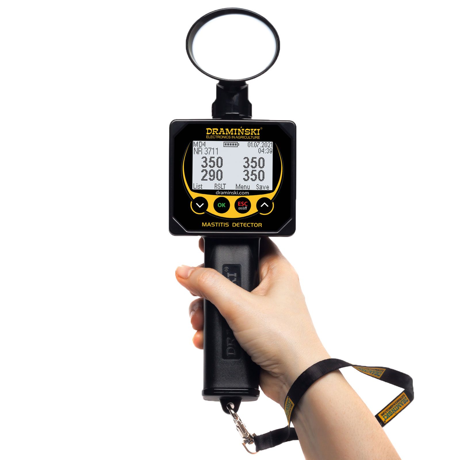 Son boîtier étanche permet de l'utiliser aussi bien à l'étable qu'au pâturage. L'appareil est portable et peut être emmené sans problème partout où il est nécessaire. Le grand écran LED du détecteur affiche simultanément les résultats de mesure de tous les quartiers de la mamelle, ce qui permet de comparer facilement les valeurs.