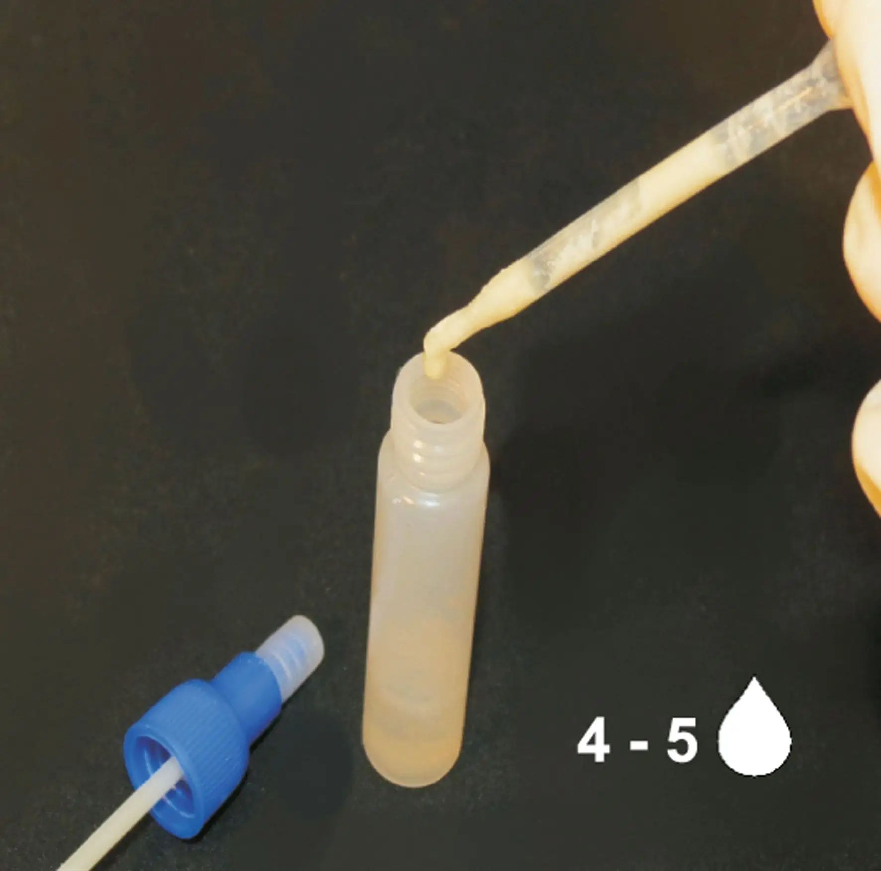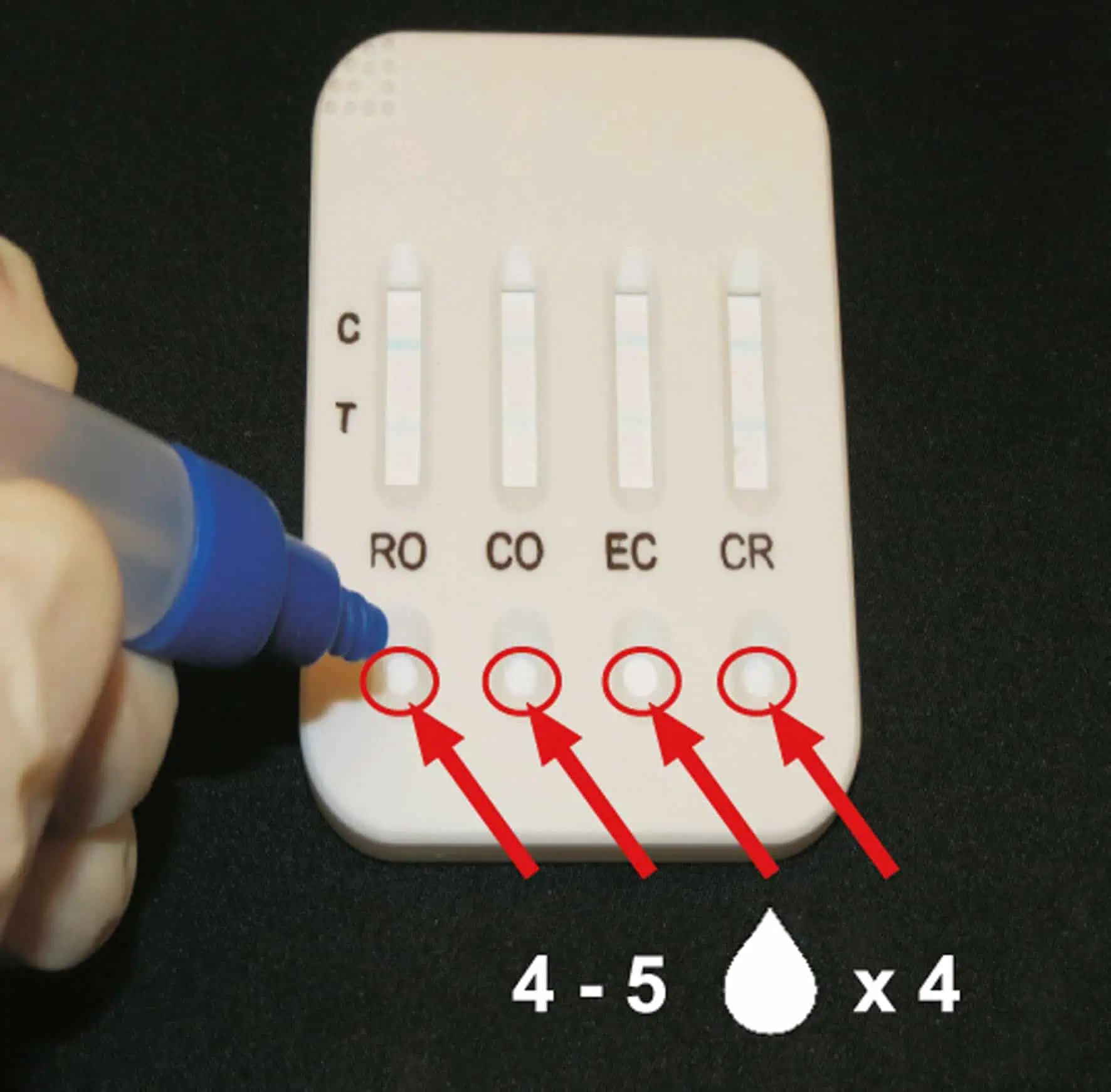 L'utilisation du test est simple : prenez un échantillon de la diarrhée, mélangez-le avec le réactif fourni, puis appliquez le mélange sur la cassette de test. En environ dix minutes, vous pouvez identifier les agents pathogènes et prendre les premières mesures nécessaires, comme une désinfection intensive, pour protéger la santé de votre veau. De plus, le test permet de détecter les infections multiples, qui sont souvent présentes en plus des infections individuelles.