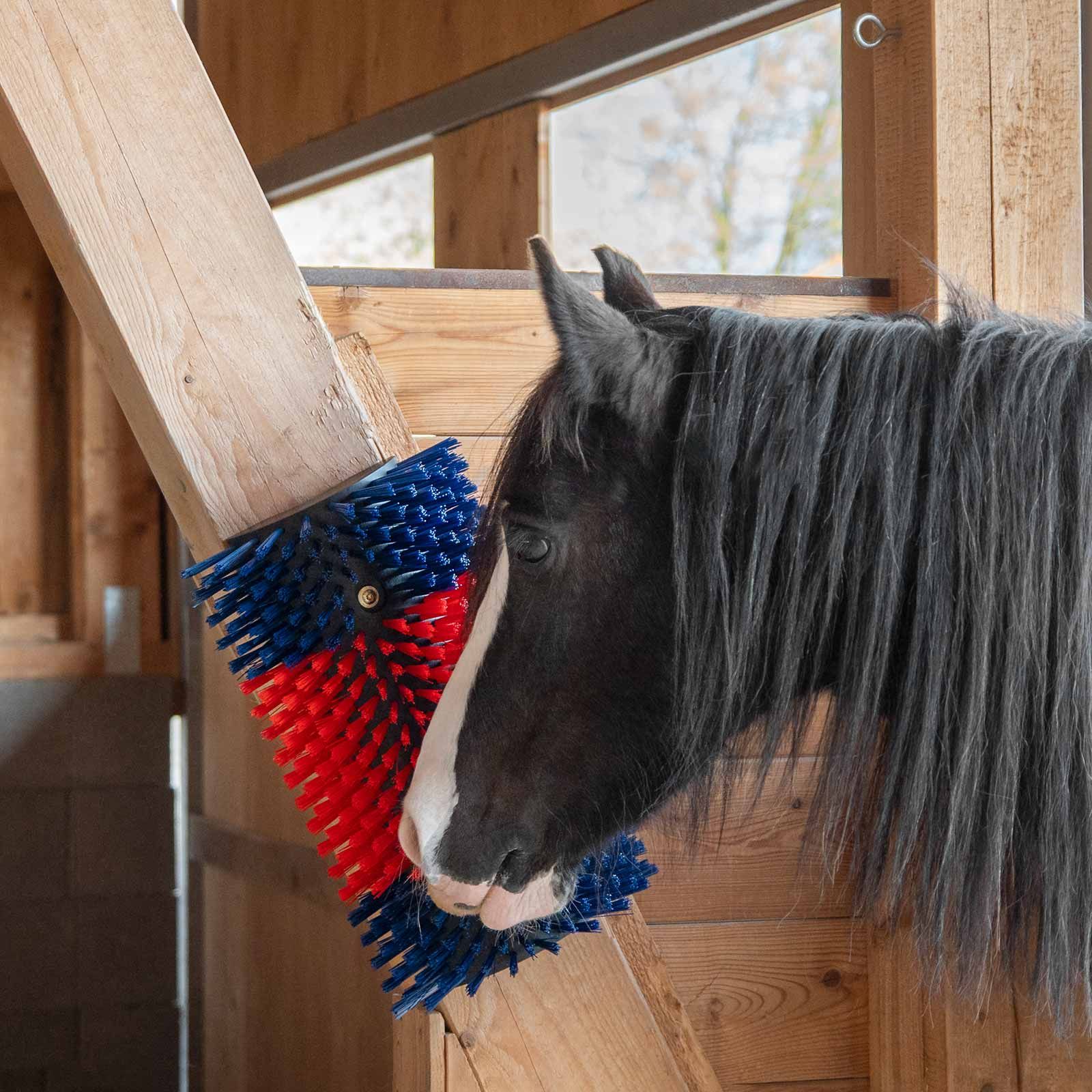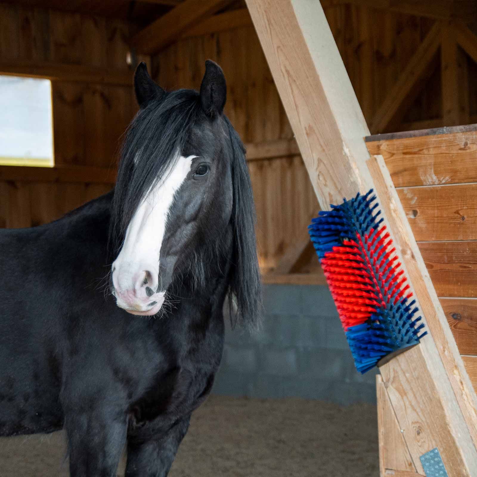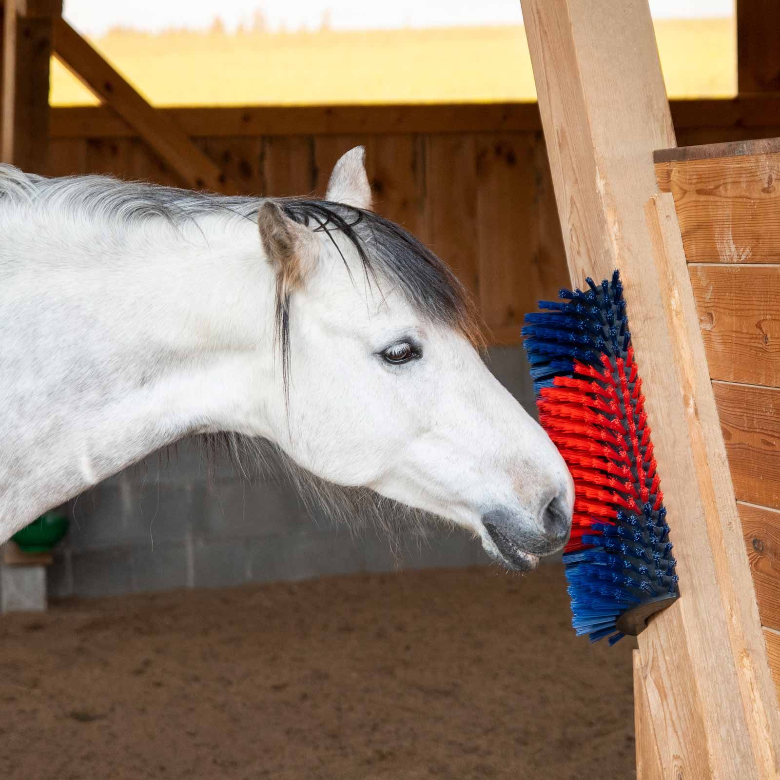 Donnez à vos animaux la possibilité de se frotter, de se nettoyer et de se sentir bien. Cette brosse à gratter demi ronde XL peut être utilisée comme brosse à vache, brosse à gratter pour chevaux et pour de nombreux autres animaux. La brosse à gratter a été conçue pour permettre à l'animal de se frotter la tête et les côtés du corps, ce qui améliore son bien-être dans l'étable. Cela favorise non seulement les comportements naturels, mais assure également un nettoyage et un entretien optimal du pelage.