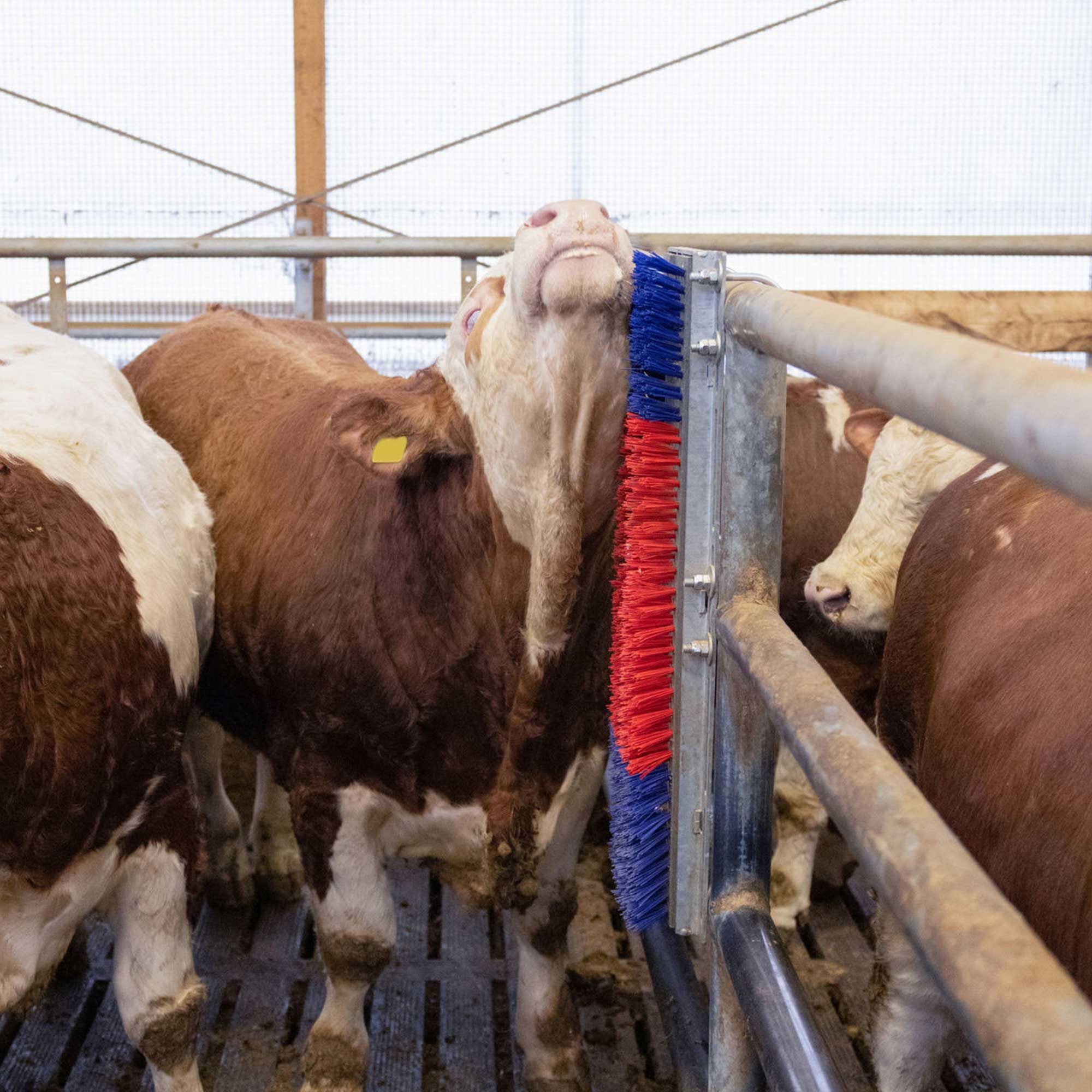 La brosse à gratter pour bovins est particulièrement adaptée aux taureaux et aux bovins en phase d'engraissement qui attachent de l'importance à un élevage sain et respectueux de l'espèce. Elle favorise non seulement le bien-être des animaux, mais aussi leur santé.
